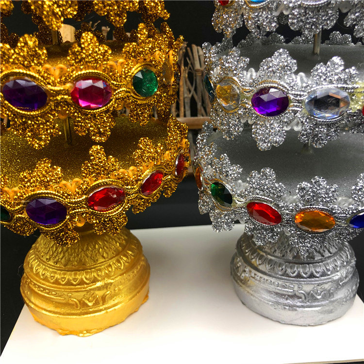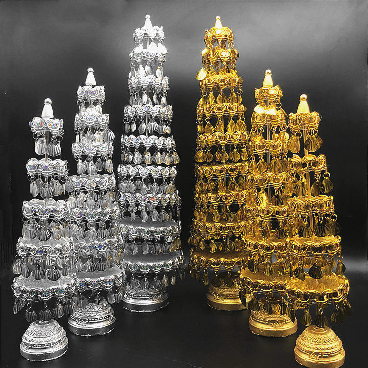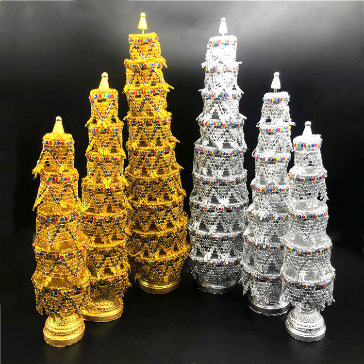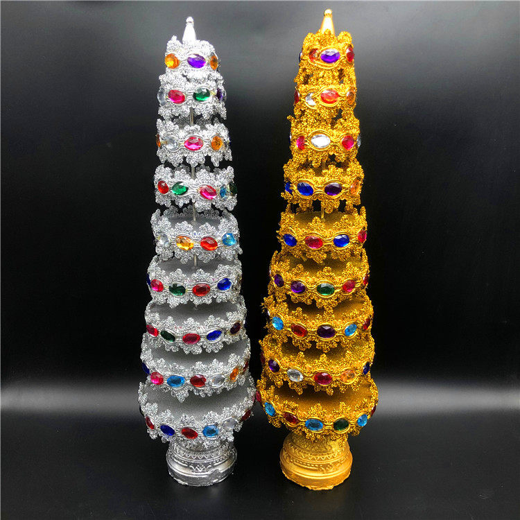 Spot Thailand Buddha brand tribute gold and silver pagoda 975th floor dedicated to the tree Buddha hall ornaments gold and silver pair