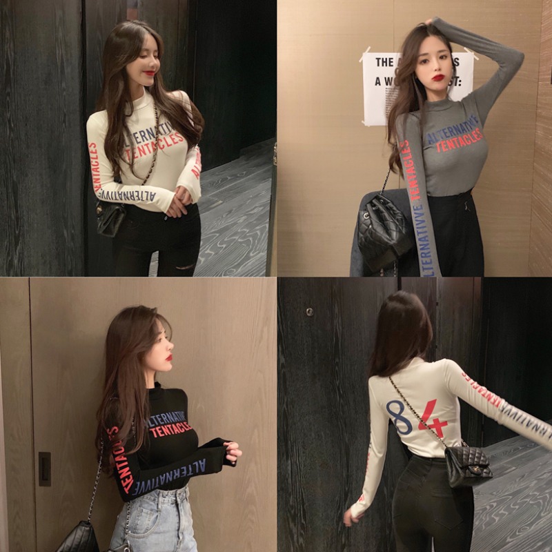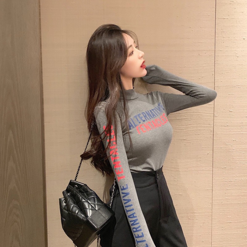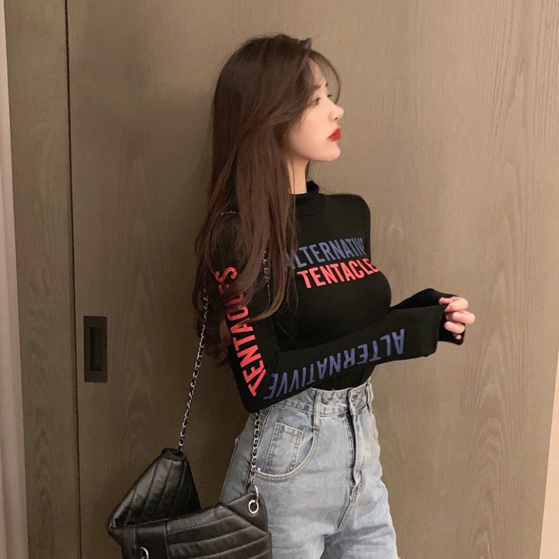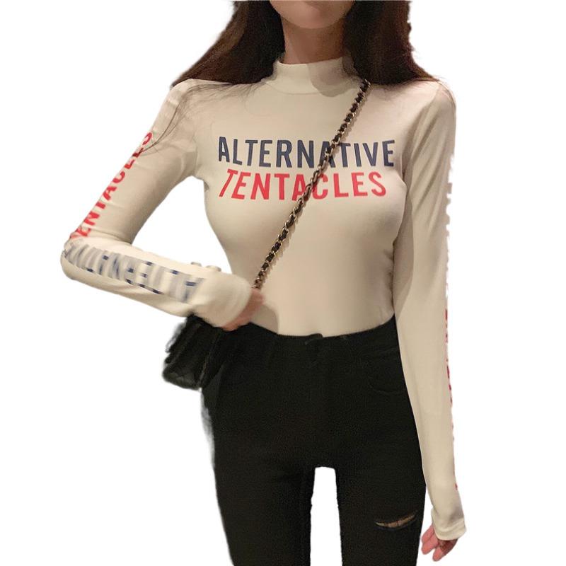 Fanchy Korean version of the half turtleneck bottoming shirt women's spring and autumn with a slim letter all-match Western style long-sleeved T-shirt top