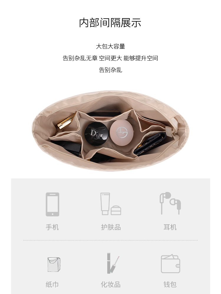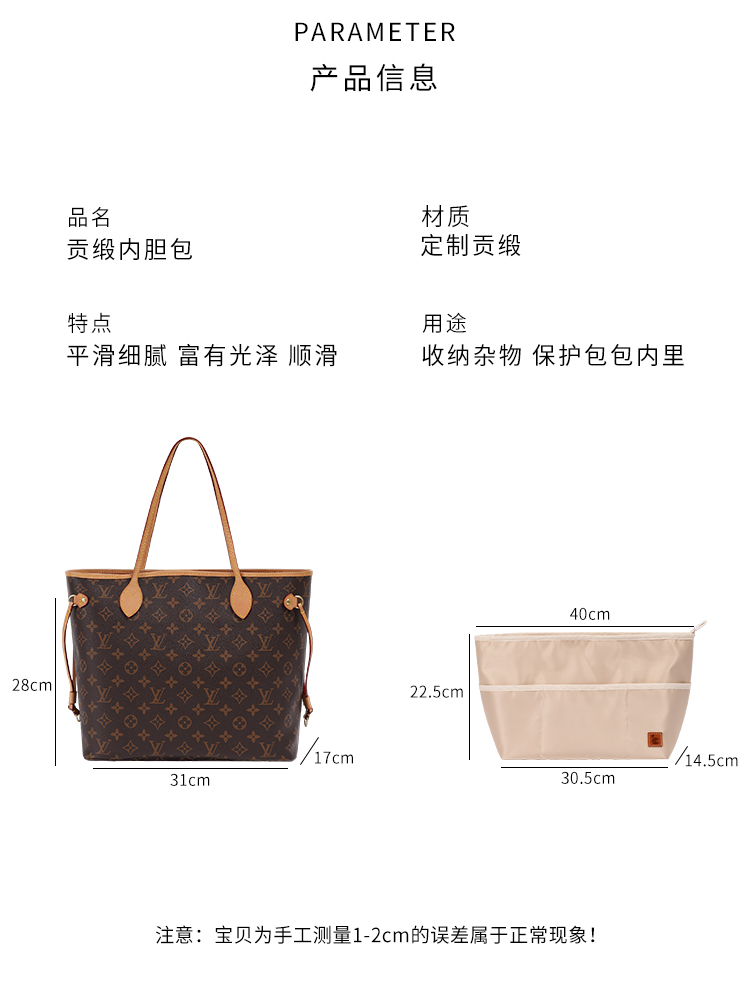 For LV NEVERFULL liner bag lining medium number of special finishing separation containing bag in bag inner bag