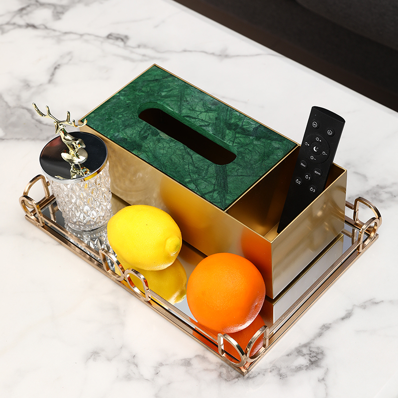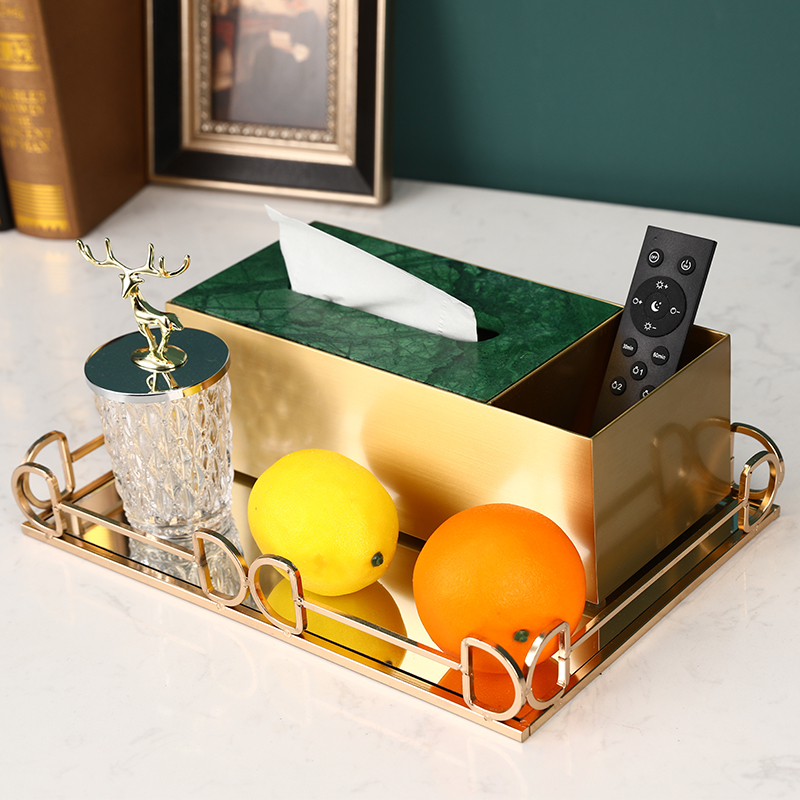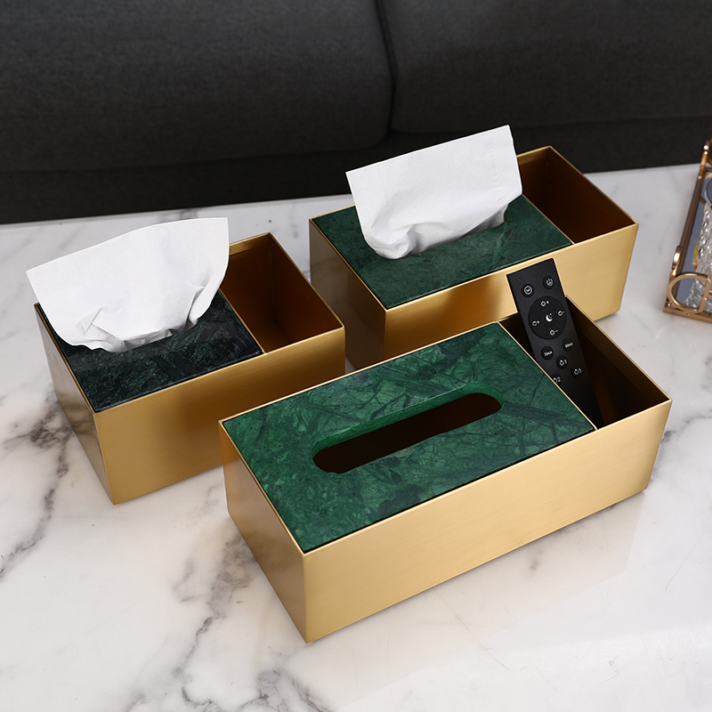 Brass marble light luxury tissue box decoration living room Nordic style toilet paper box simple American European storage box