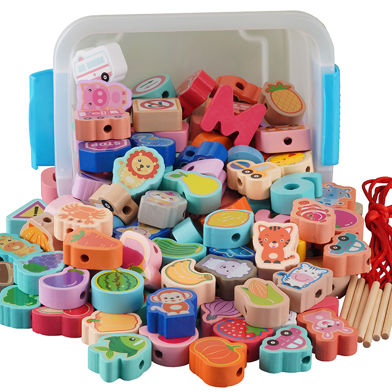Children wear beads educational toys 1 one 2 year old baby 3 beads training concentration kindergarten building blocks boys and girls