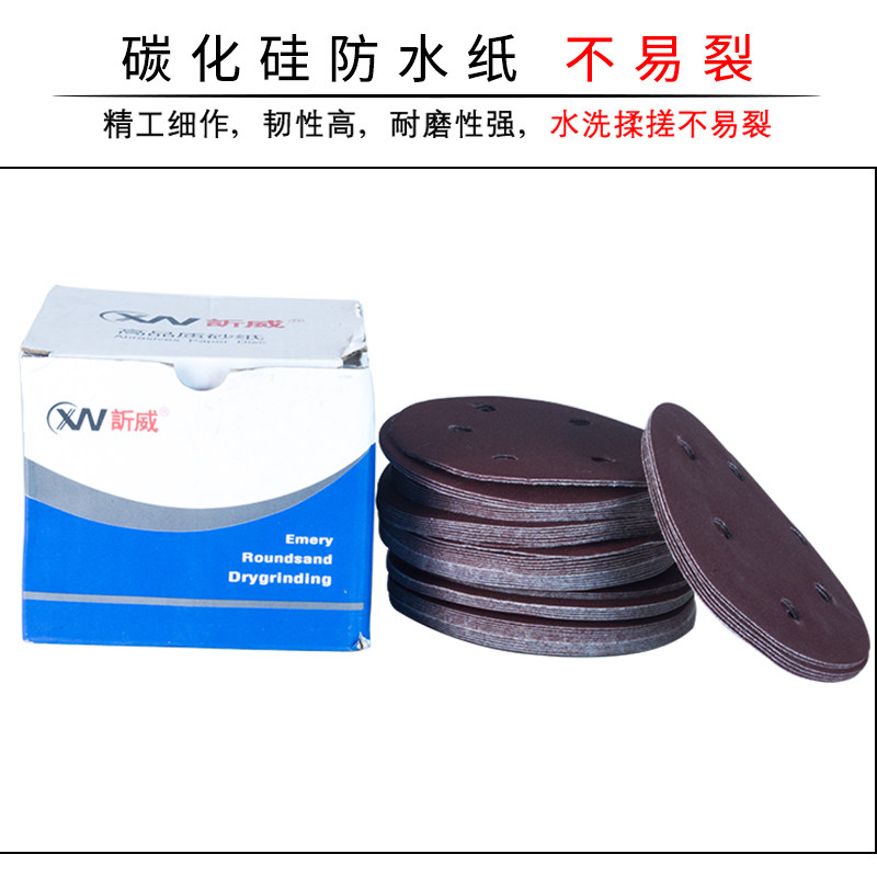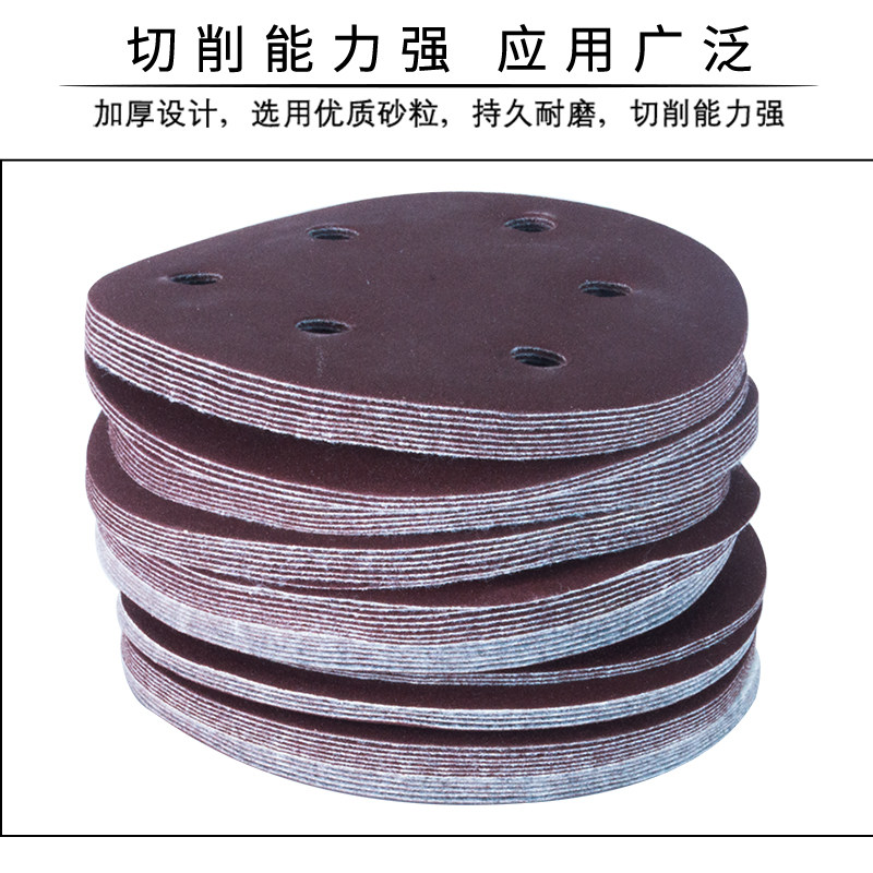 Flocking Sandpaper 5 Inch 6 Holes Red Sand Metal Plastic Beating Mill Sandpaper Self-Adhesive Dry Grinding Polished Disc Pulled Suede Sandpaper