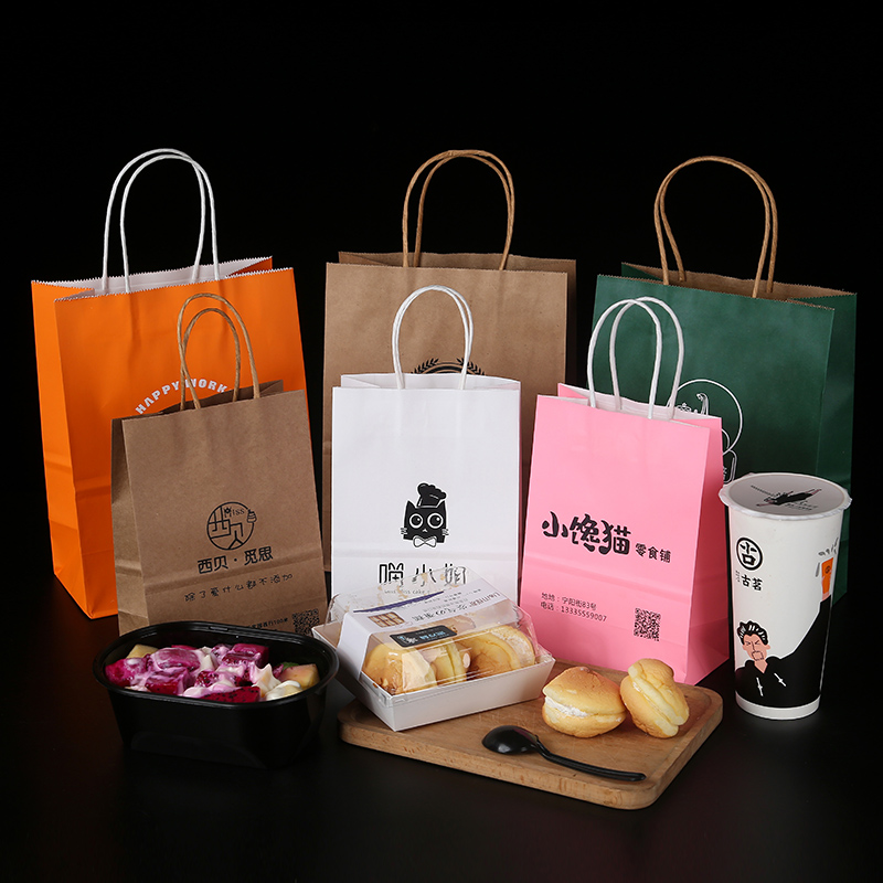Kraft Paper handbag Handbag Milk Tea Takeaway Packing Bag Baking Packing Bag Bag bag Bag Clothing Shop Customised Logo