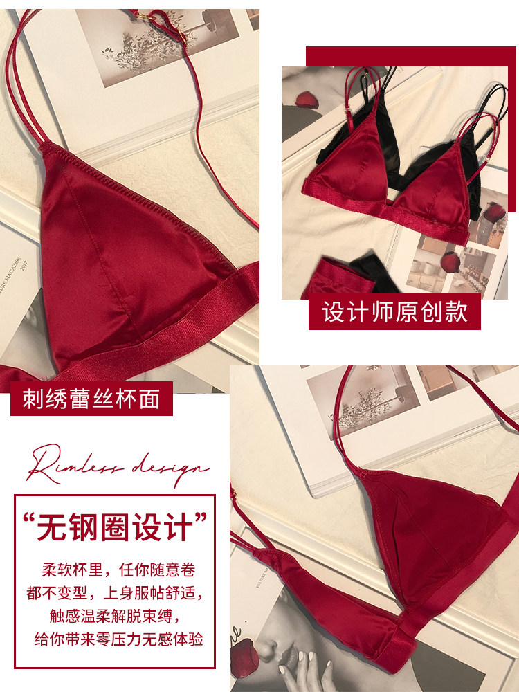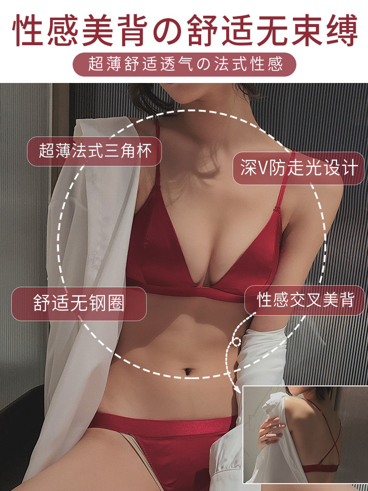 French beauty back erotic underwear thin small chest gathered triangle cup sexy red bra no underwire no trace female summer