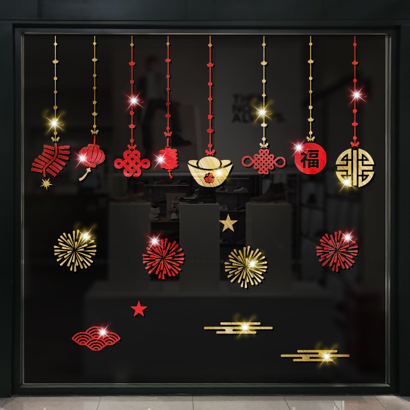 New year decoration creative glass door stickers New Year wall stickers shop window flower stickers pull door window glass stickers