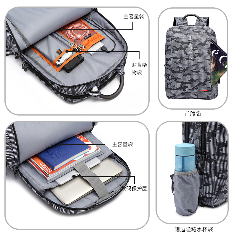Zipper pockets Mobile phone pockets Interlayer zipper pockets ID slots Mesh pockets Computer pockets