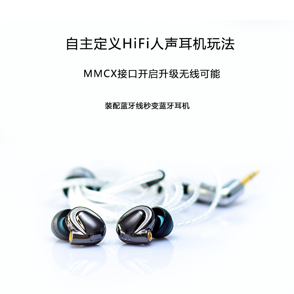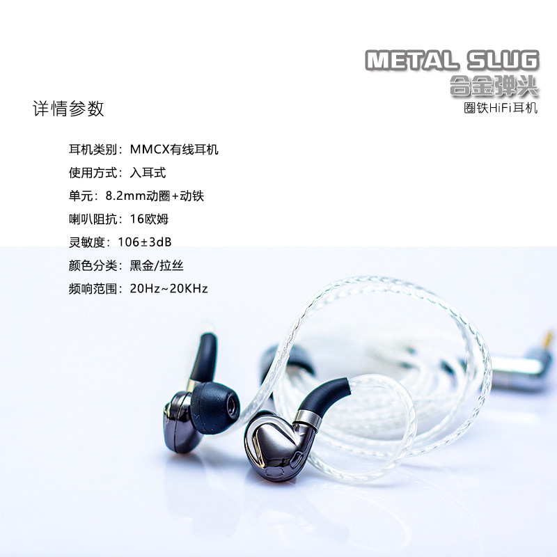 Alloy slug: ring iron dual-unit HiFi high-fidelity voice headset high-resolution bass surging voice beautiful