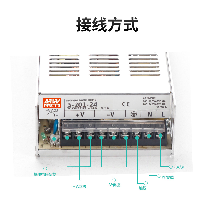 Minwei 24V10A DC switching power supply 12V20A 15V 18V 250W 201W 240W 240W power supply