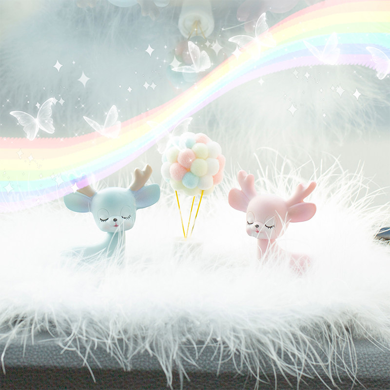 Pink deer Macaron balloon feather non-slip mat A pair of cylindrical auspicious fruit feather non-slip mat A pair of deer a pair of deer a pair of large feather non-slip a pair of pink and white balloon feather non-slip mat