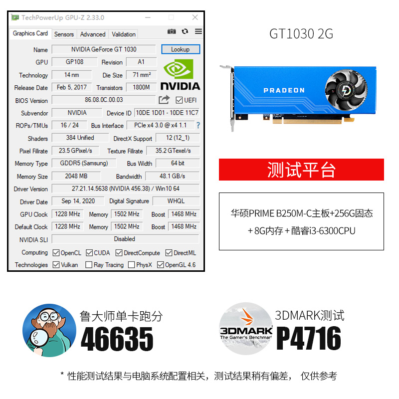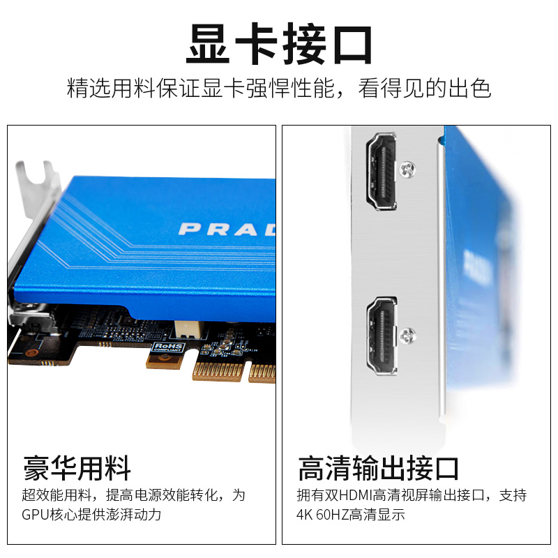 Pradeon GT1030 graphics card 2G desktop brand small main shell Industrial control office drawing game independent graphics card Half-height knife small card