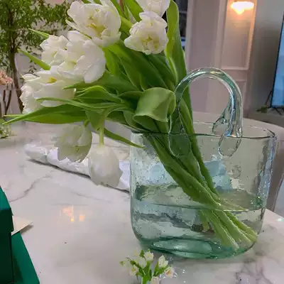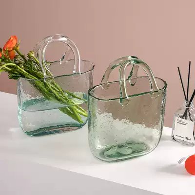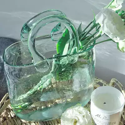 Light blue bag vase (clearance spot) light blue handbasket vase (spot) green bag vase (spot) Green Trumpeter carrying basket vase (spot) green medium hand basket flower