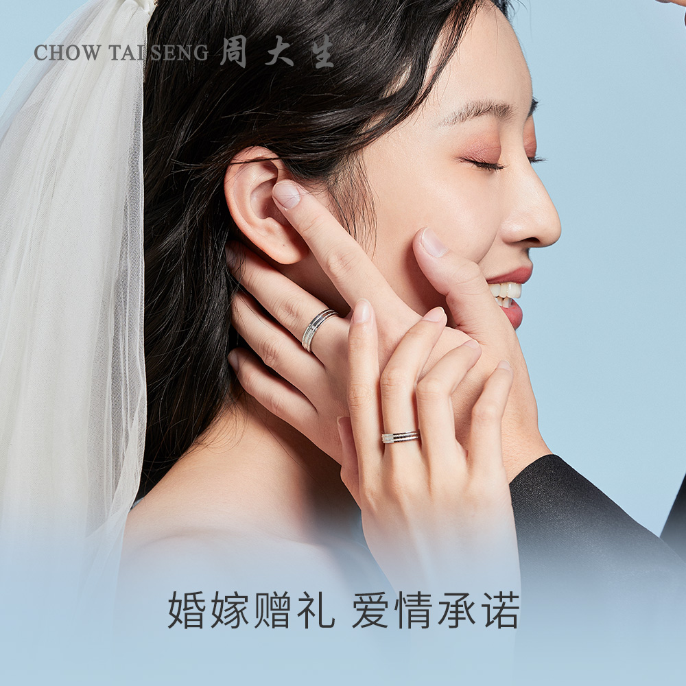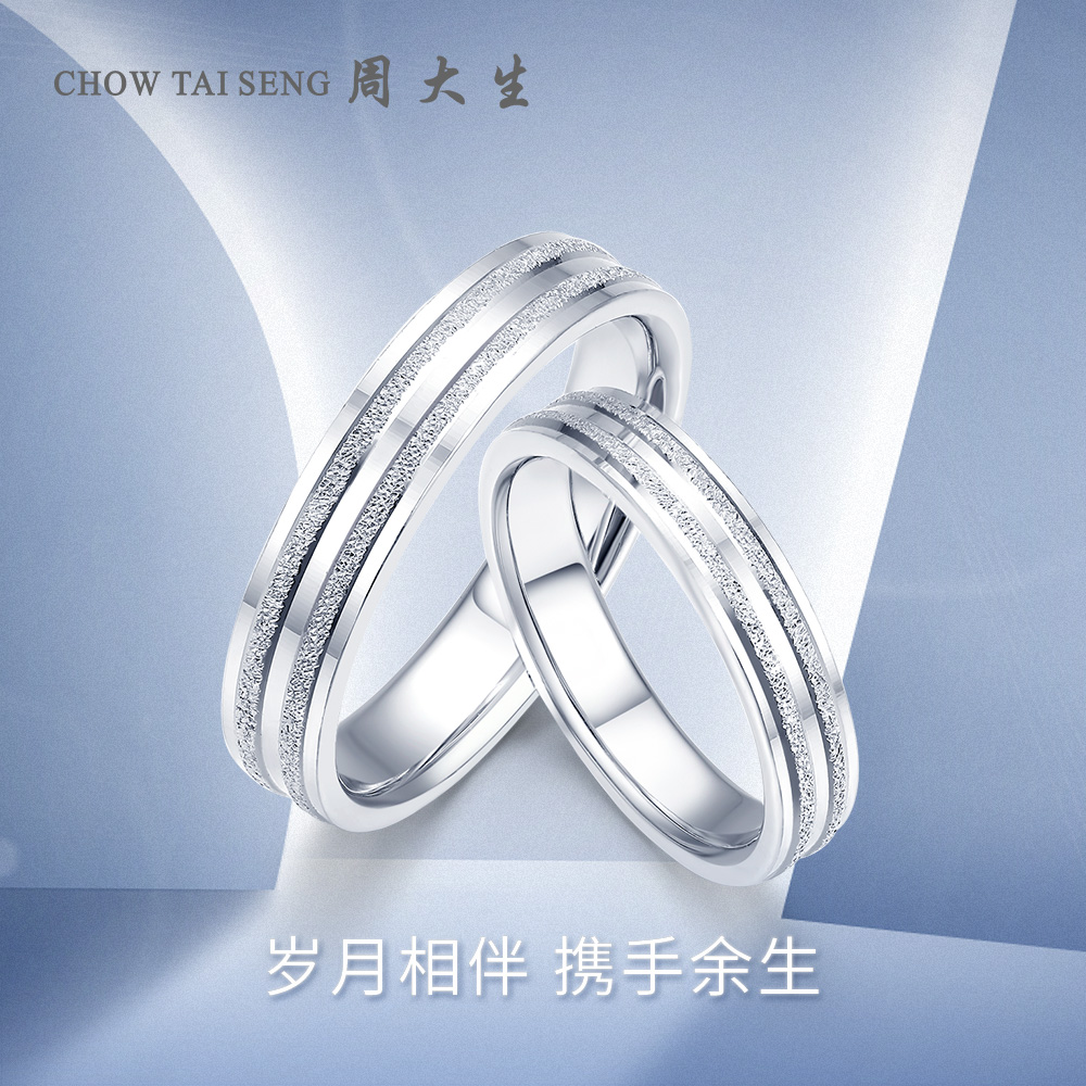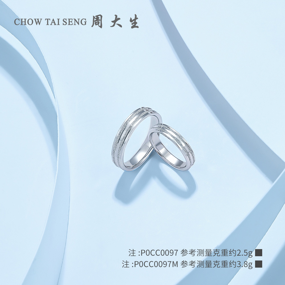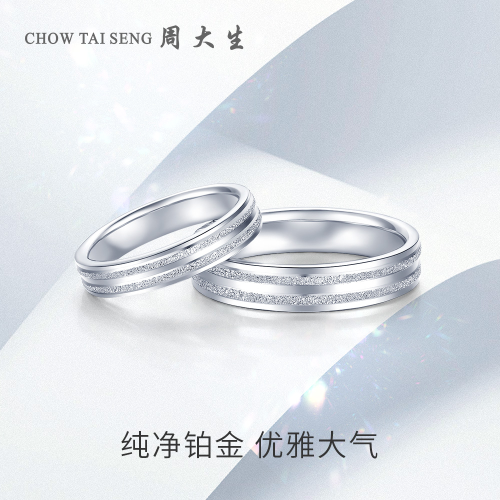 Chow Tai Sang platinum pair ring pt950 white gold ring a couple couple couples matte plain circle Valentine's Day gift