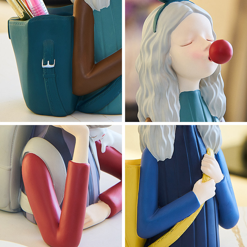 Bubble girl pen holder endorsement bag-yellow bubble girl pen holder-red bubble girl sitting on the crescent-yellow bubble girl on the book pen holder-green with cat girl mobile phone frame Mona Lisa hand