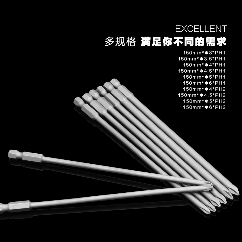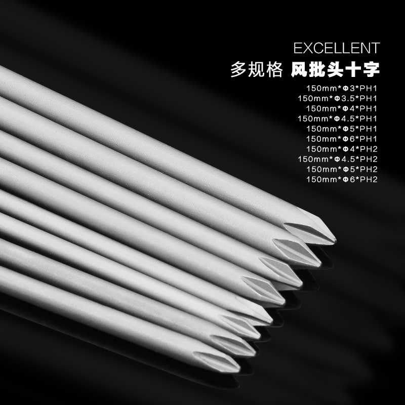 Lengthened and hardened pneumatic screwdriver head cross electric screwdriver head strong magnetic electric screwdriver head wind cape screwdriver head 3 4 5 6mm