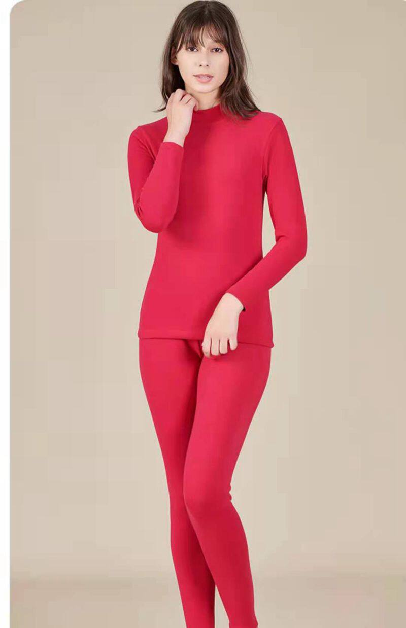 Huayouyuan Ms. Pure Cotton Medium Thick Thermal Underwear Set Medium High Collar Shu Velvet Thick Long Clothes 788010