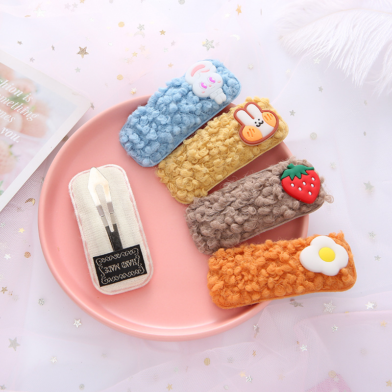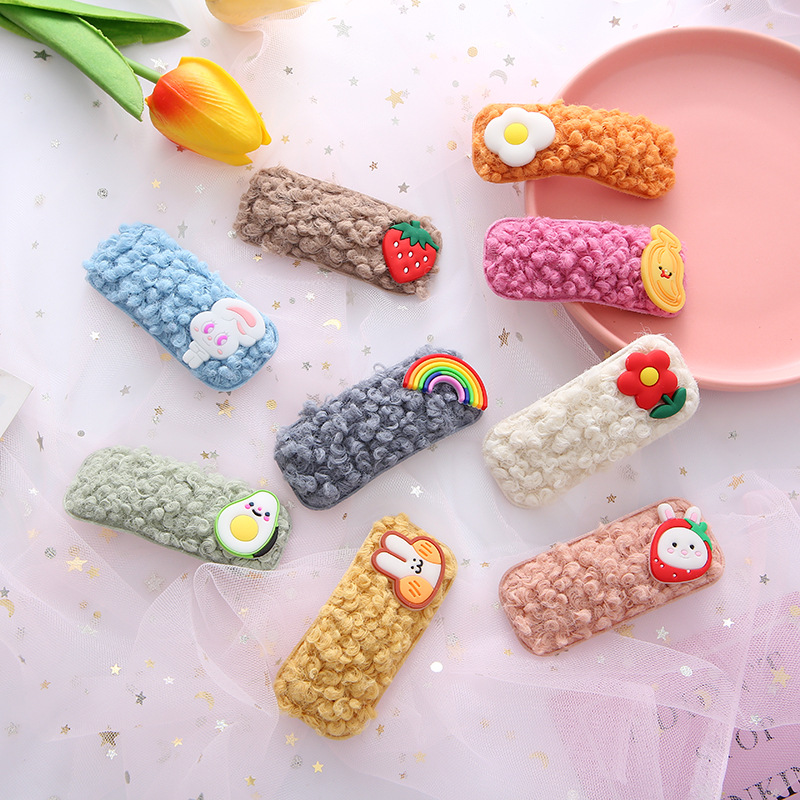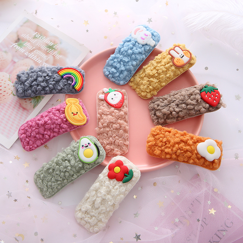 Lake Blue Rainbow Hair Clip Light Pink Strawberry Rabbit Hair Clip Card Its color Strawberry hair clip Pink Banana Hair Clip Grass Green Bull Oil Fruit Hair Clip Blue Little Rabbit Hair Clip Yellow Little Rabbit Hair Clip White Flowers Hairpin Orange Hoho Bag Egg Hairpin Clip