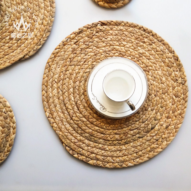 ins brief Nordic natural beauty style countryside handmade plain straw woven heat insulation pot cushion cup cushion plinth grass meal cushion