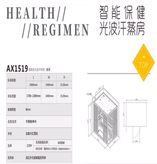 Elegant Home Sweat Steam Room Far Infrared Sauna Room Smart Light Wave Physiotherapy Room Dry Steam AX1513