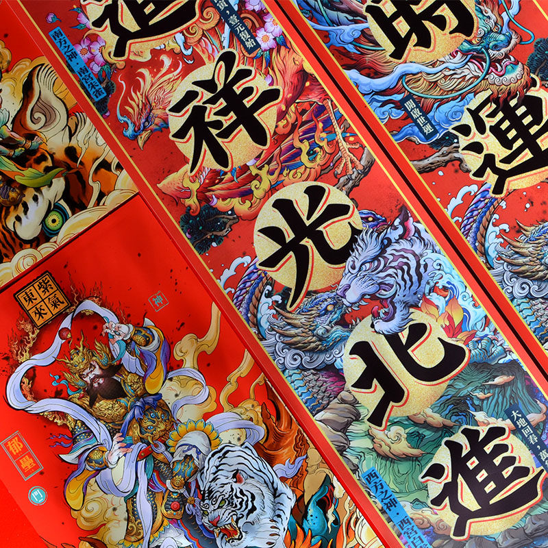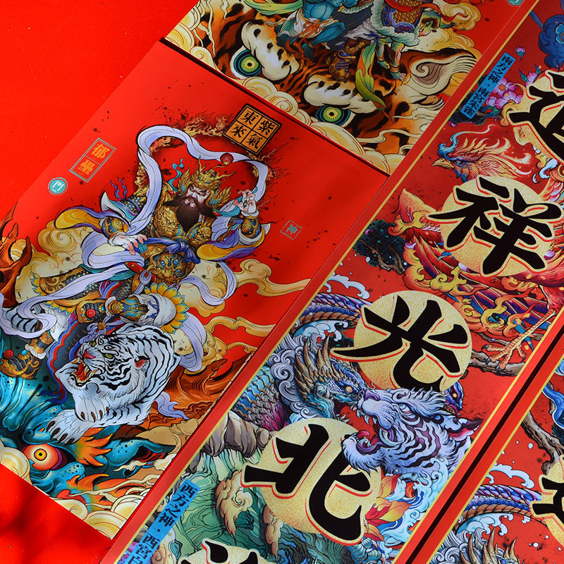 Guochao Spring Festival couplets Suite 2022 New Year's Spring Festival Personality Creative couplets Custom Fulett Door sticker Extra Large 5 m 4 waterproof