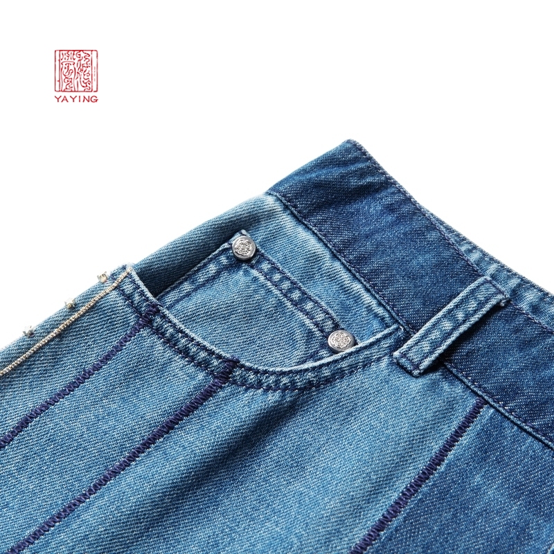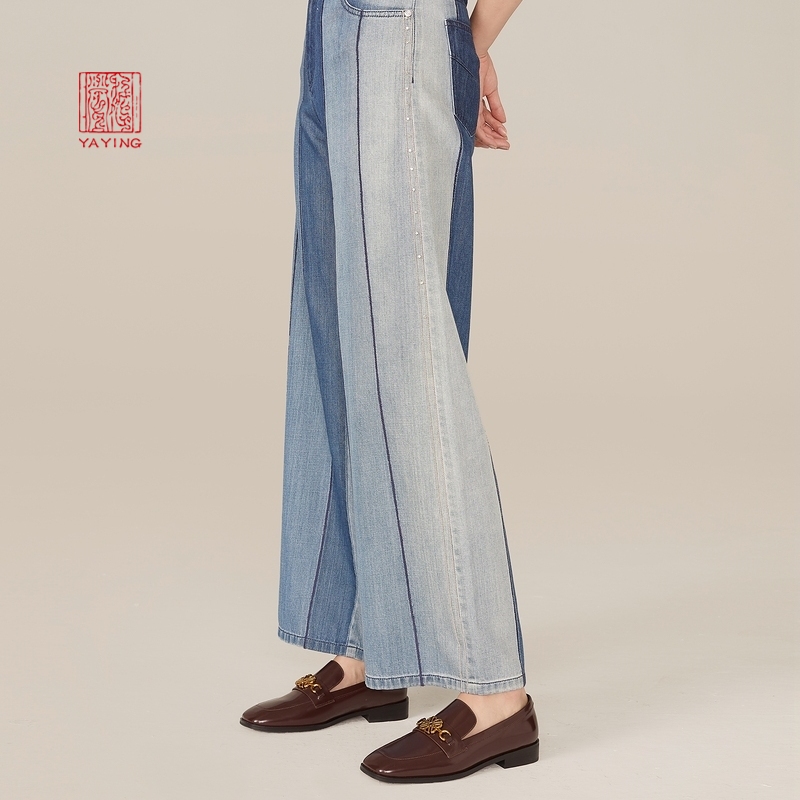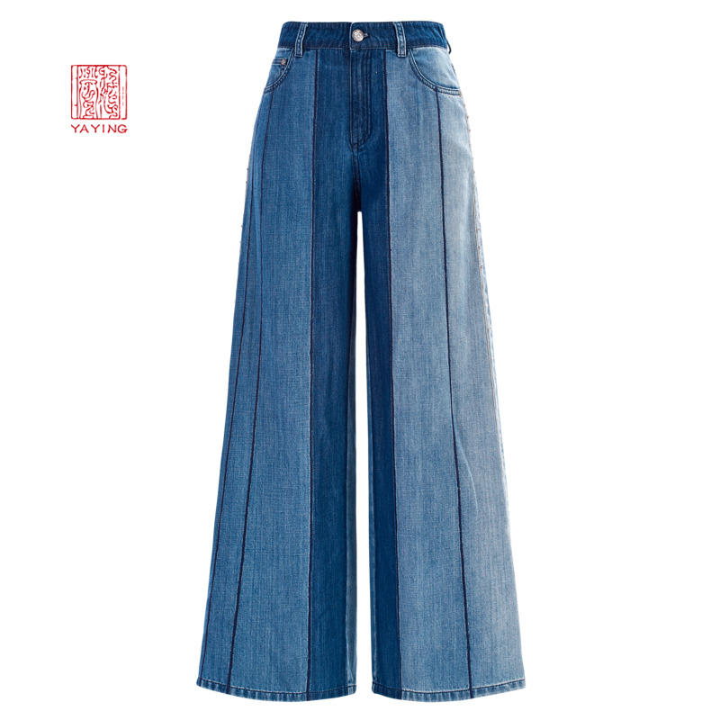 YYing women's clothing design sense collage high waist denim relaxed broadleg long pants new 6627A