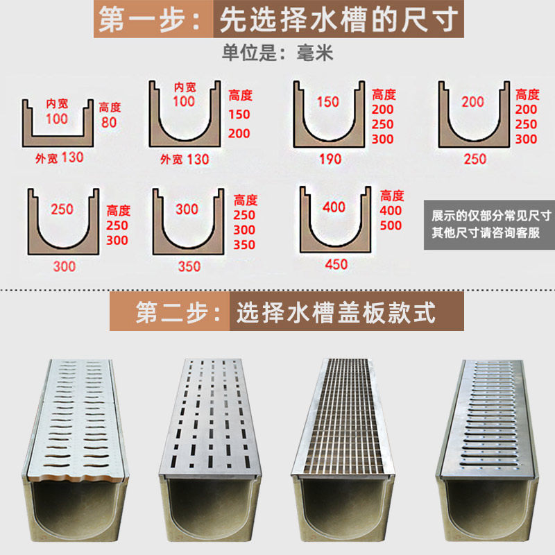 Finished Resin Concrete Drainage Ditch U Groove Linear Stainless Steel Grid Cover Plate Drain Sink Up 10 m