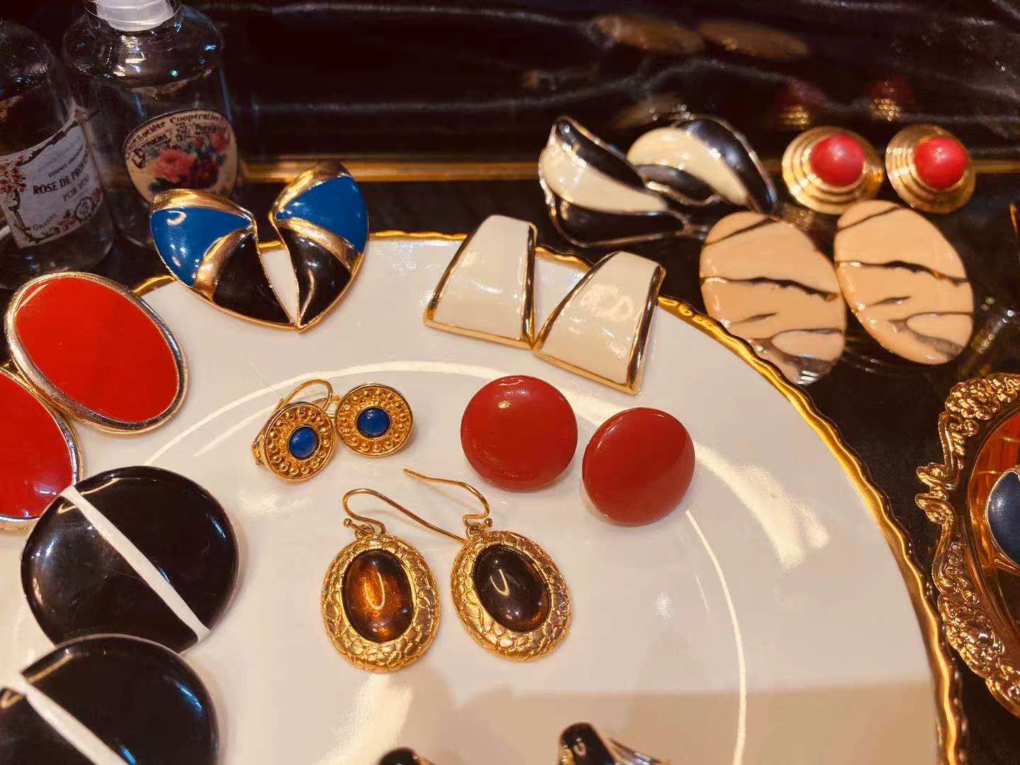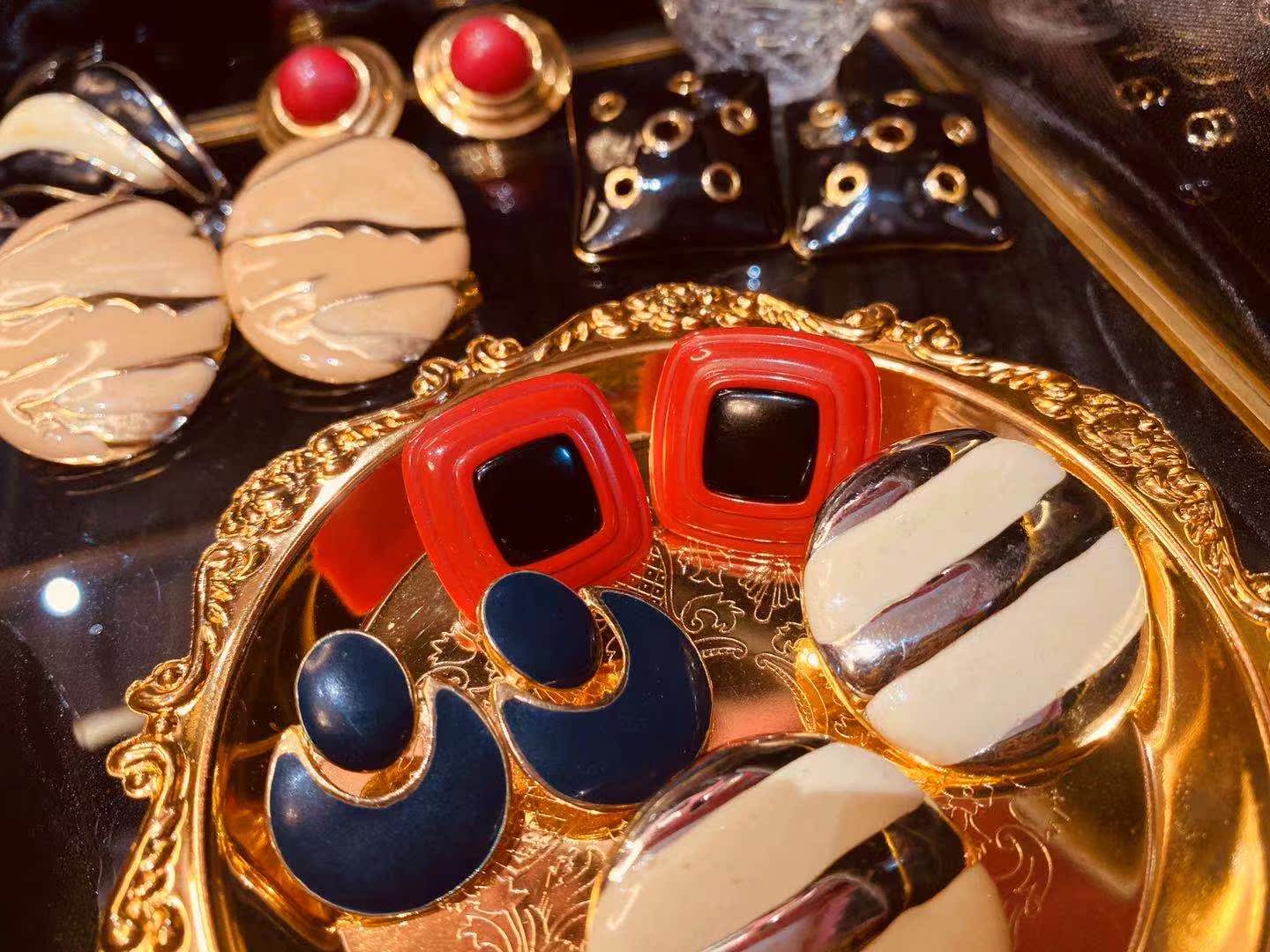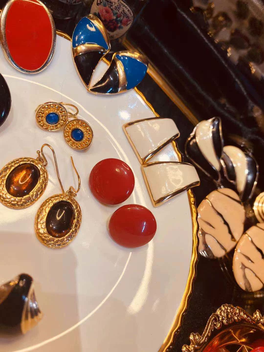 (Millionaire Bean) Vintage Earrings American Enamel Vintage Vintage Jewelry Ear Clips Ear Pins Europe (16)