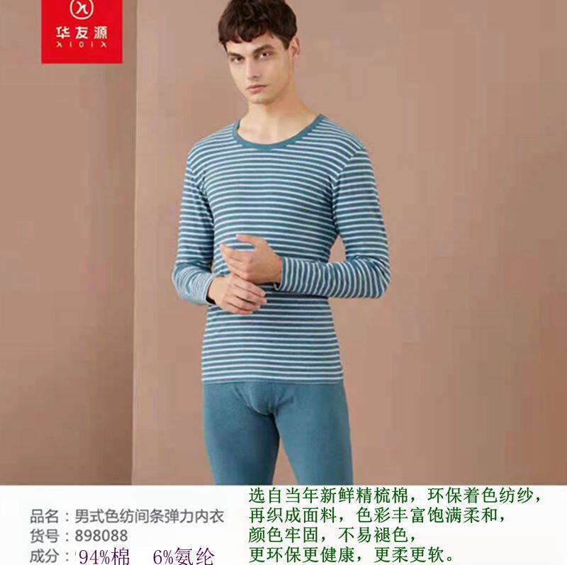 Huayouyuan men's autumn clothes and long johns striped color spinning comfortable elastic suit autumn and winter youth bottoming cotton sweater 898088
