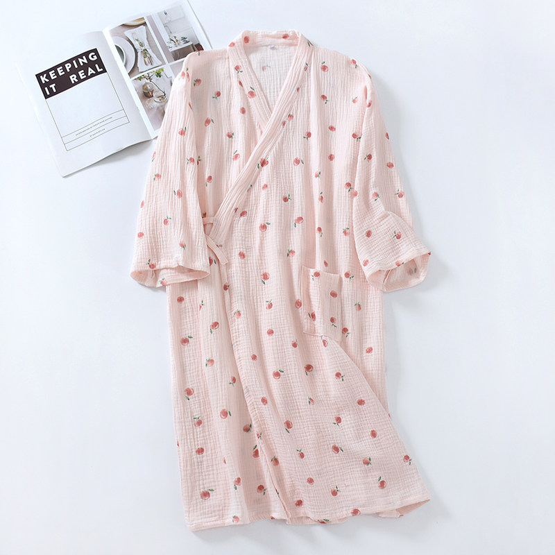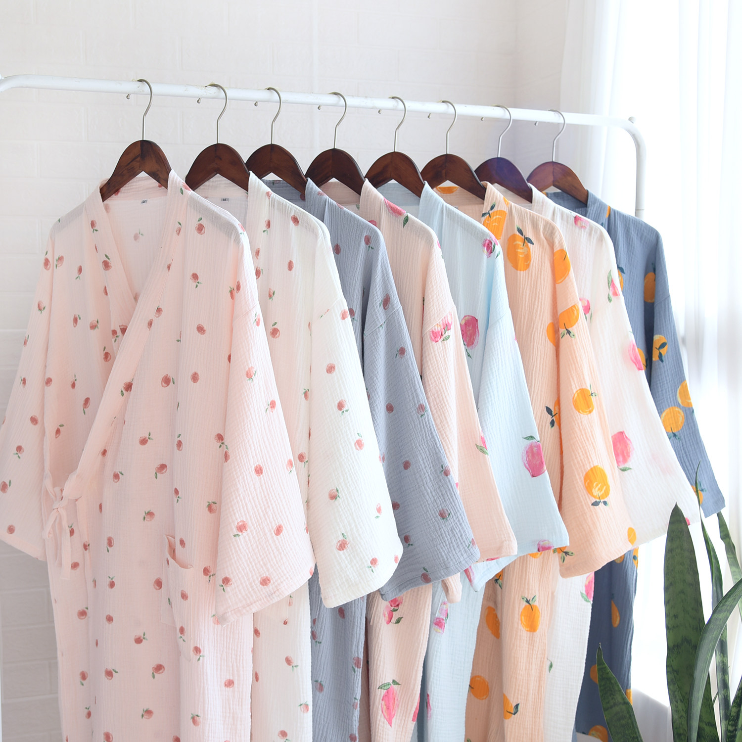 Pink water honey peach ~ crepe cloth long robe with dark blue water honey peach ~ crepe cloth long gown white strawberry ~ crepe cloth long gown light blue strawberry ~ crepe cloth long robe pink strawberry ~ crepe cloth long gown dark blue