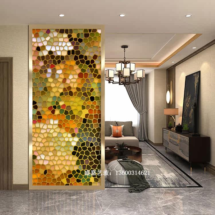 European simple art glass screen Bedroom partition wall Entry entrance Small apartment Light luxury custom craft glass
