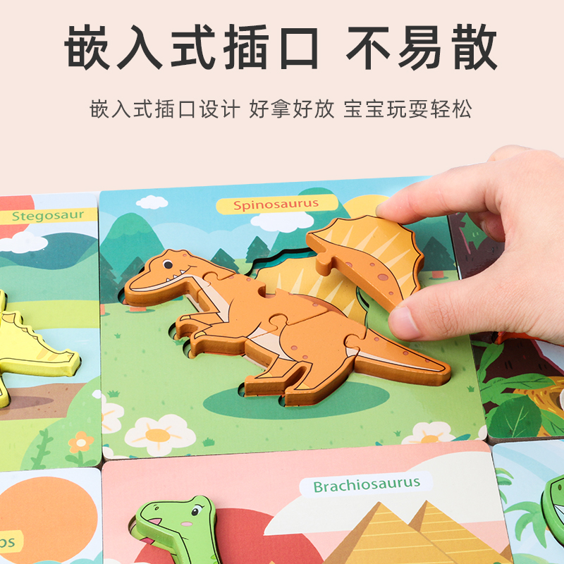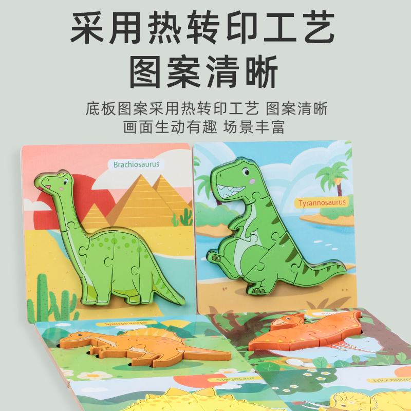 Children's wooden dinosaur puzzle 2 - 3 - 6 years old 3D cartoon puzzle baby early teaching Yi intellectual development puzzle toy