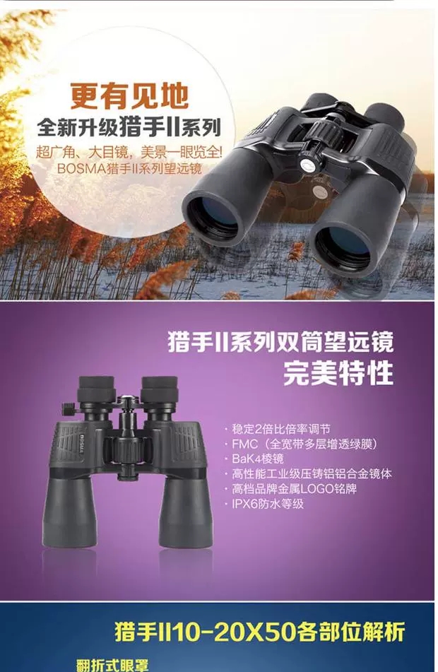 Hunter II generation stable version 7X500 standard] Hunter ll generation stable version 7X50 standard configuration] Hunter ll generation large field View version 10X50 Hunter ll generation large field vision version 10X50 standard configuration