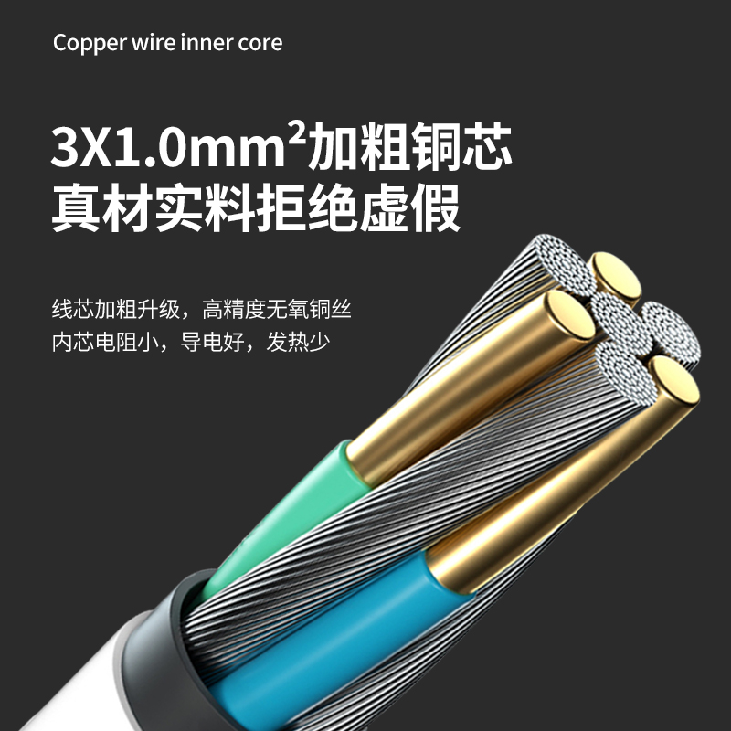 High power power supply extension cord Three-inserts 10A socket Home Three-core plug converter wiring board national standard three holes