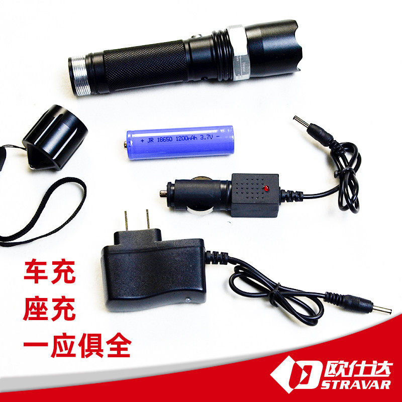 LED Strong Light Flash Zoom Flashlight Chargeable Remote Radiation Defense Cycling Household Band Safety Hammer