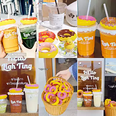 Mini small swimming ring accessories children bath water play small toy milk tea donut small yellow duck inflatable small swimming ring