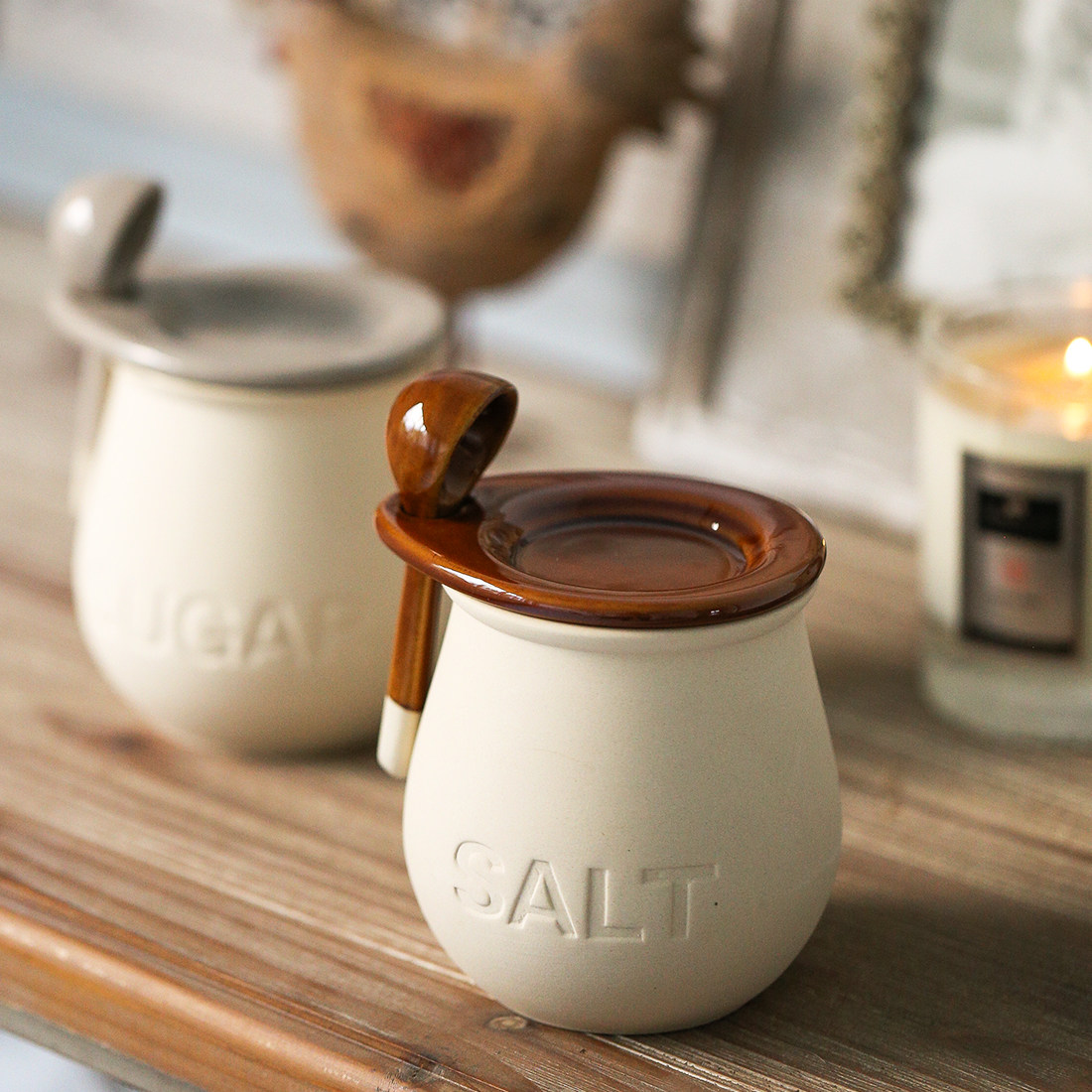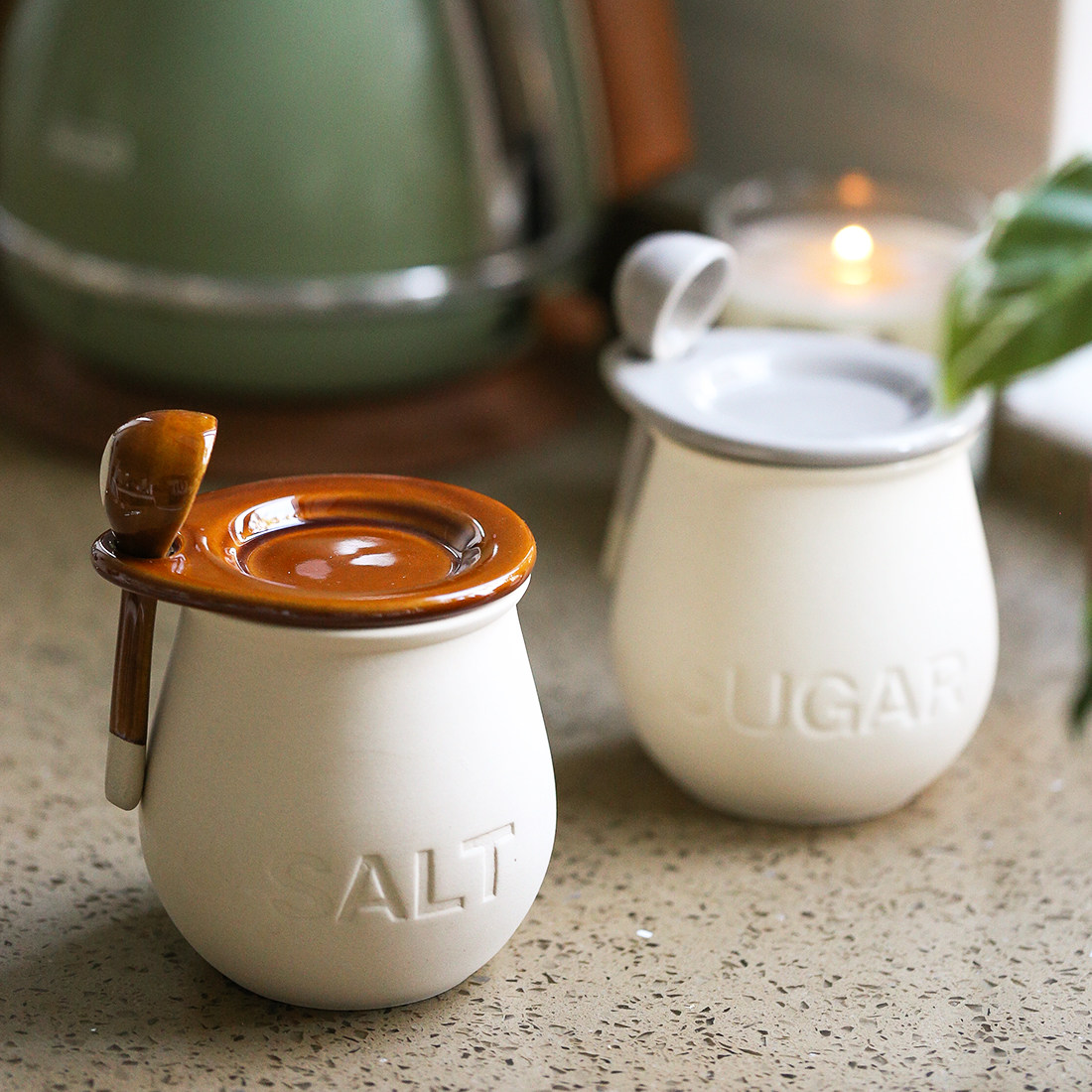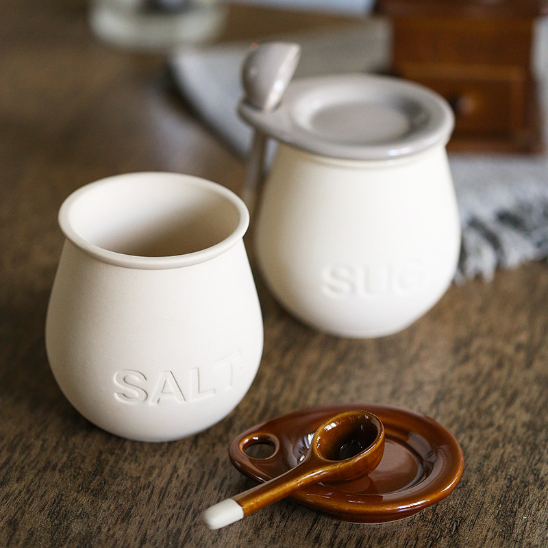 Japan-style Mori Nordic frosted with lid spoon Ceramic Containing Jar Salt Sugar Jars for Seasoning Bottles