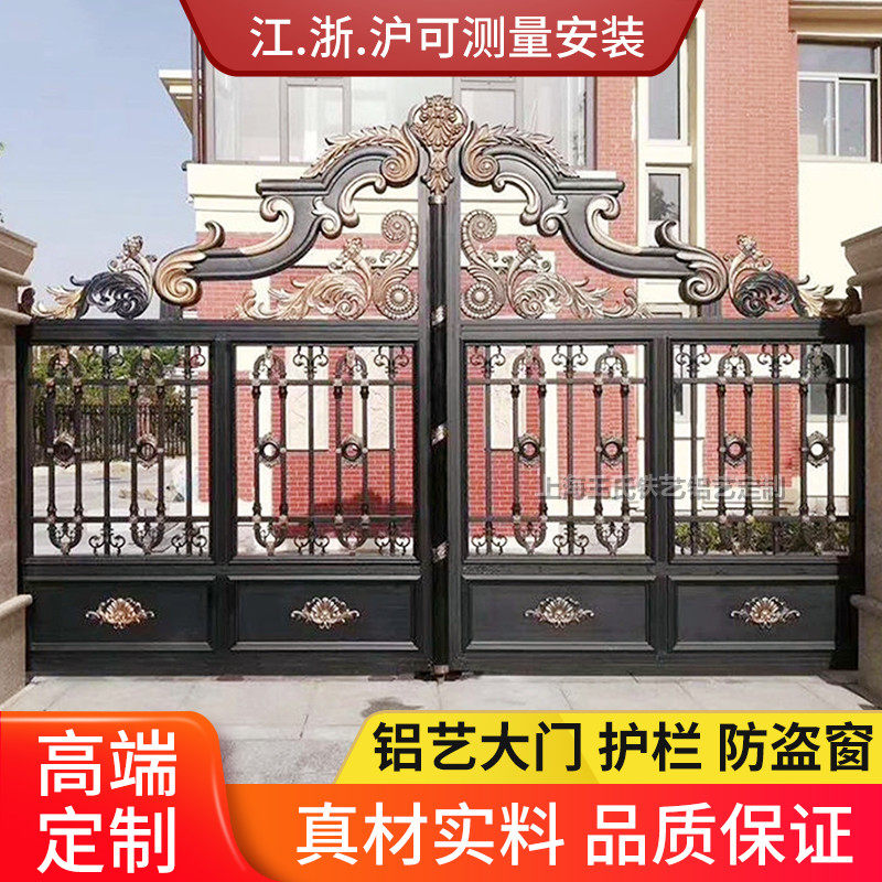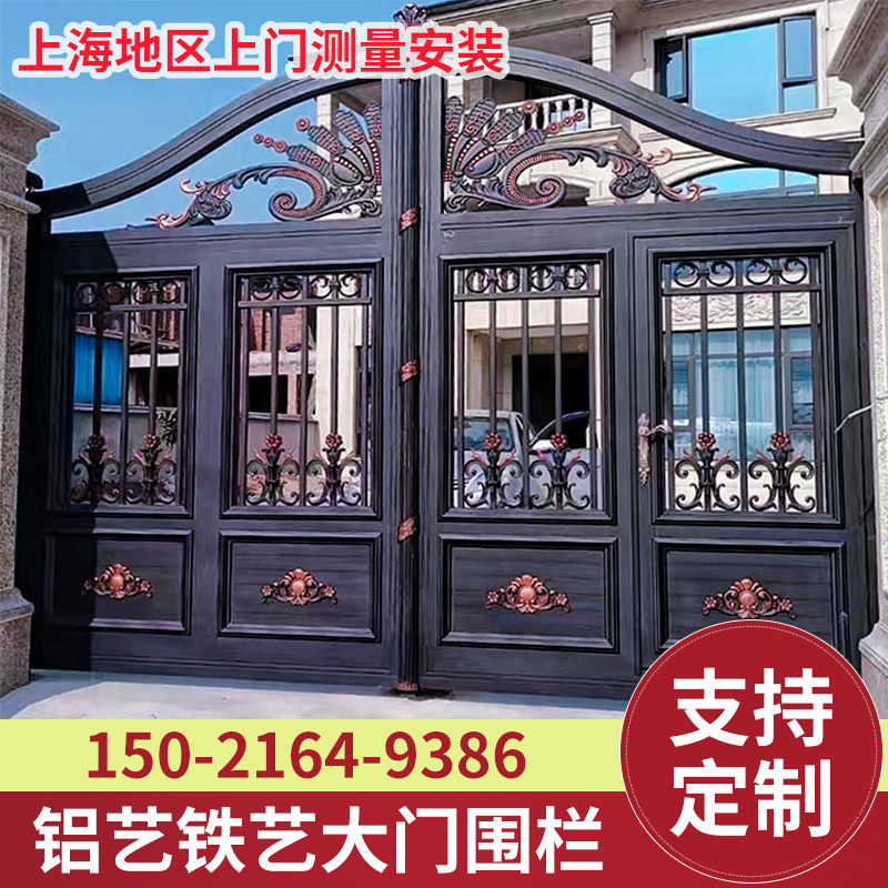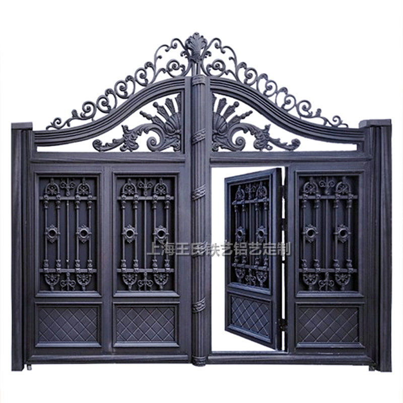 Shanghai iron art gate courtyard door double door aluminum art gate villa door small iron door European door track sliding door