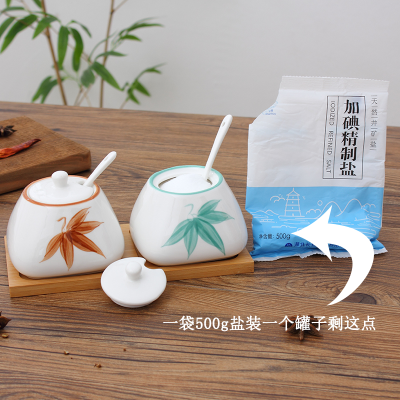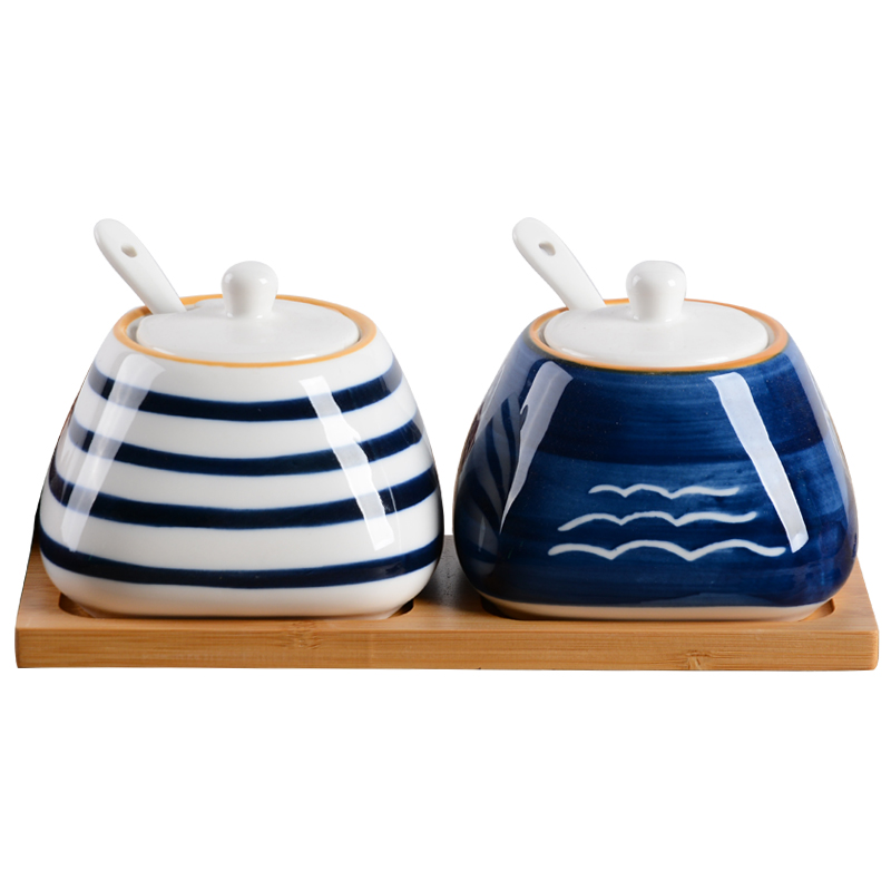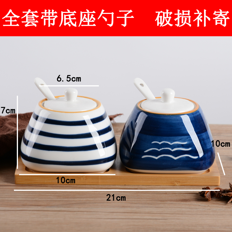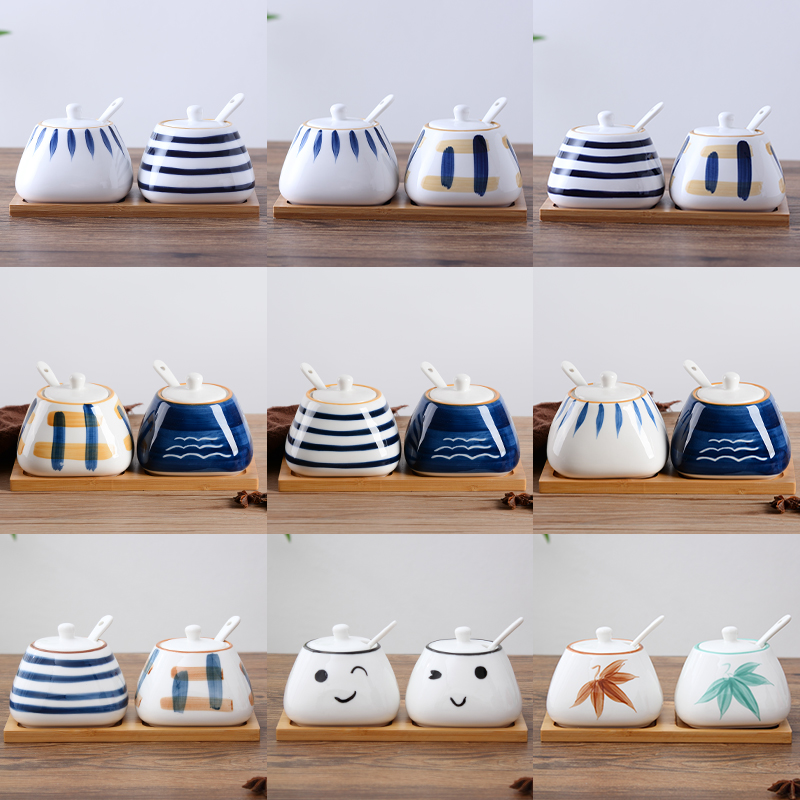 Full set of taste cans with base spoon ceramic cover to put cap oil flavor box salt tank home small fresh Japanese style