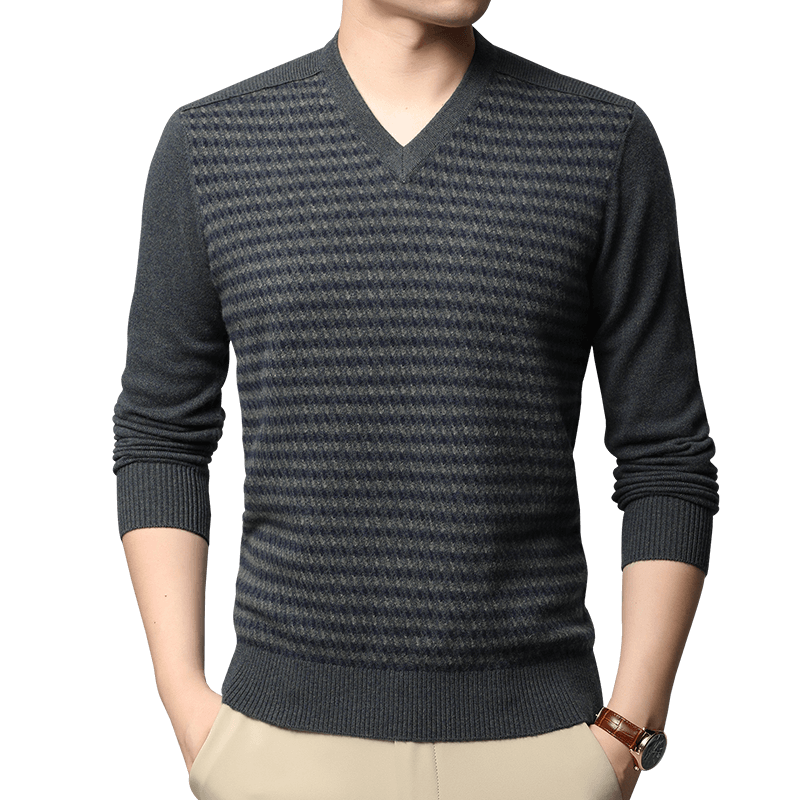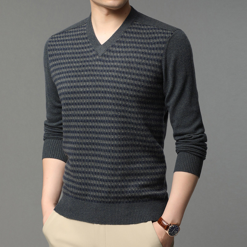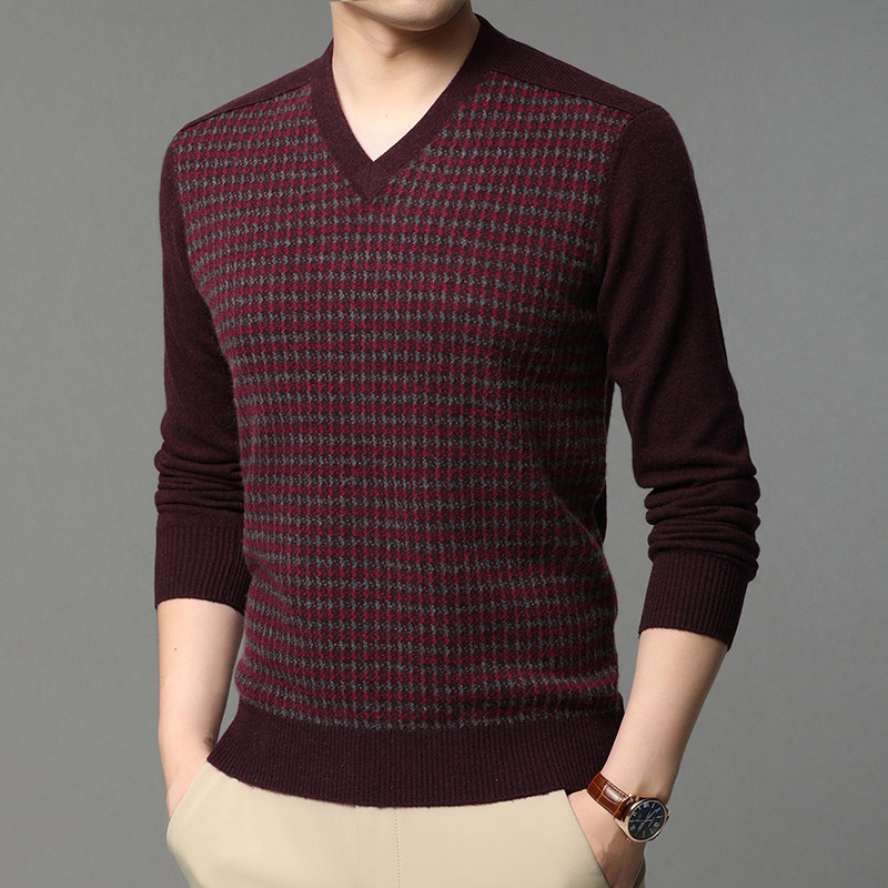 Ordos Men's 100 Pure Cashmere Sweater Winter V-neck Style Thickened Middle-aged Sweetheart Collar Business Knitwear