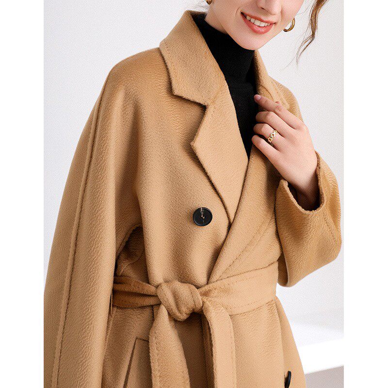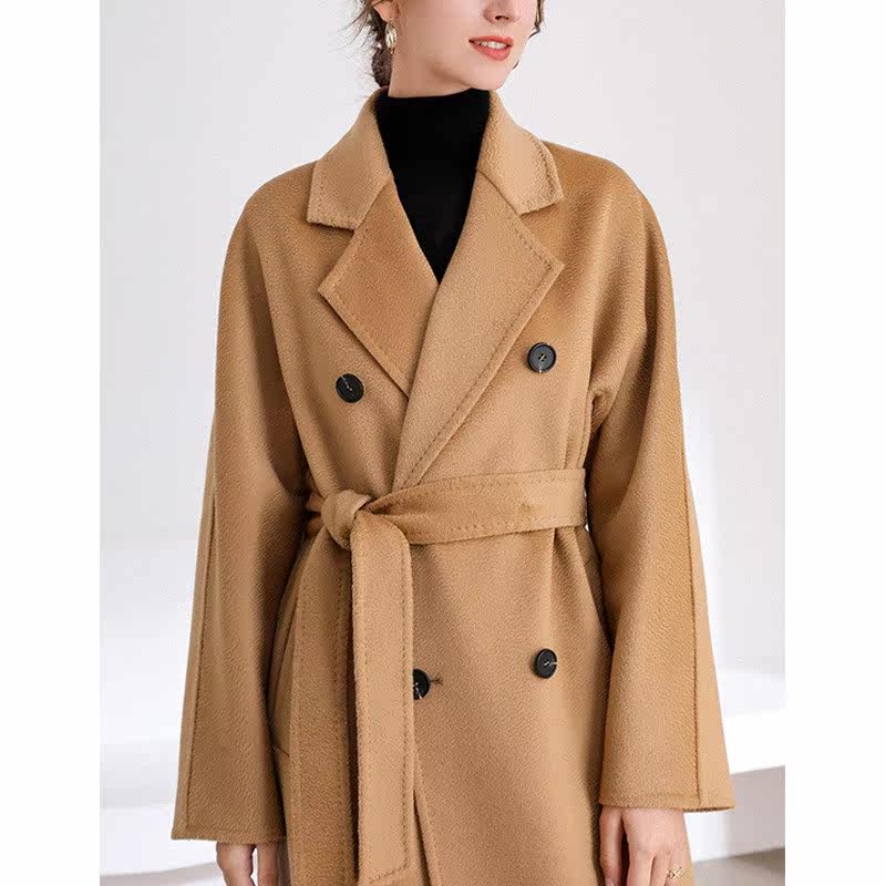 High-end water corrugated double-sided cashmere Grand coat woman 2021 The new medium long version of the wool coat high-end high level