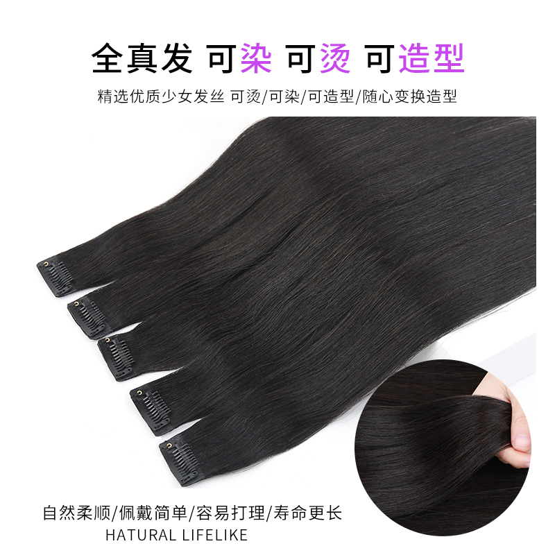 Wig female long hair wig patch one-piece seamless straight hair extension piece real hair invisible hair extension wig piece