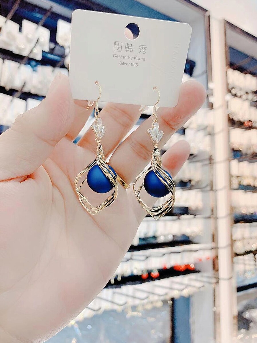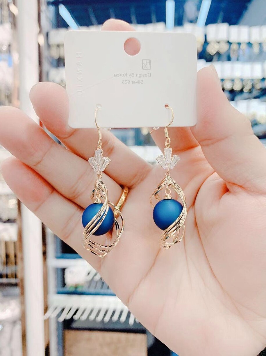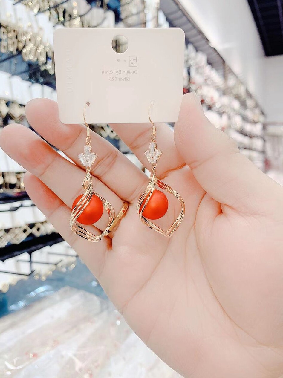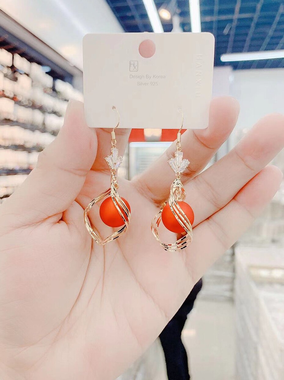 Korean version of exaggerated spiral earrings female earrings trendy temperament super fairy pearl New Year color earrings high-end sense of all-match net red