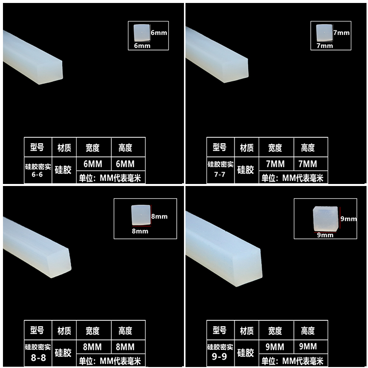 Silicone square seal strip high temperature flat strip silicone square solid strip non-slip square strip