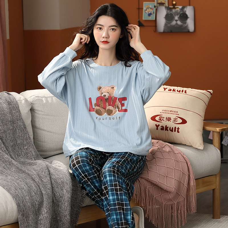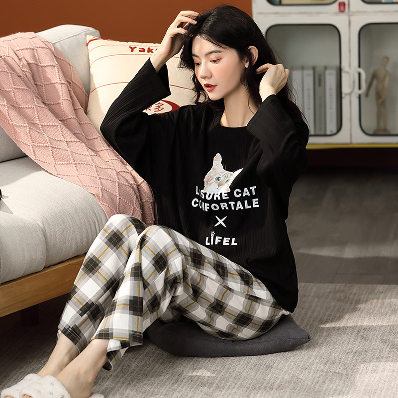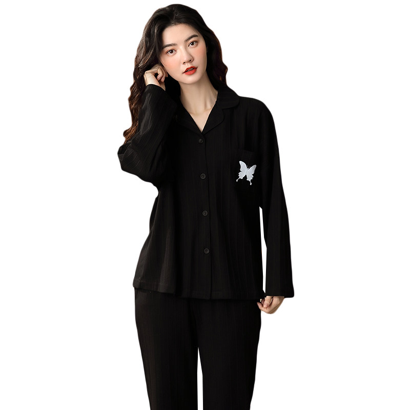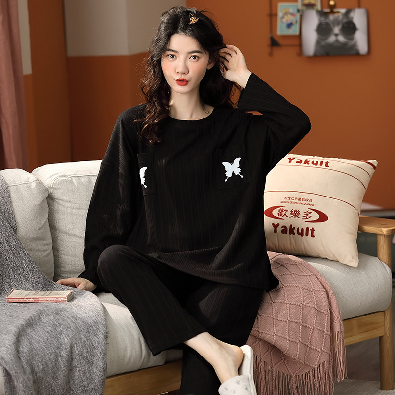 Net red new pajamas women's spring and autumn cotton embroidery long-sleeved trousers home clothes loose casual fashion two-piece suit