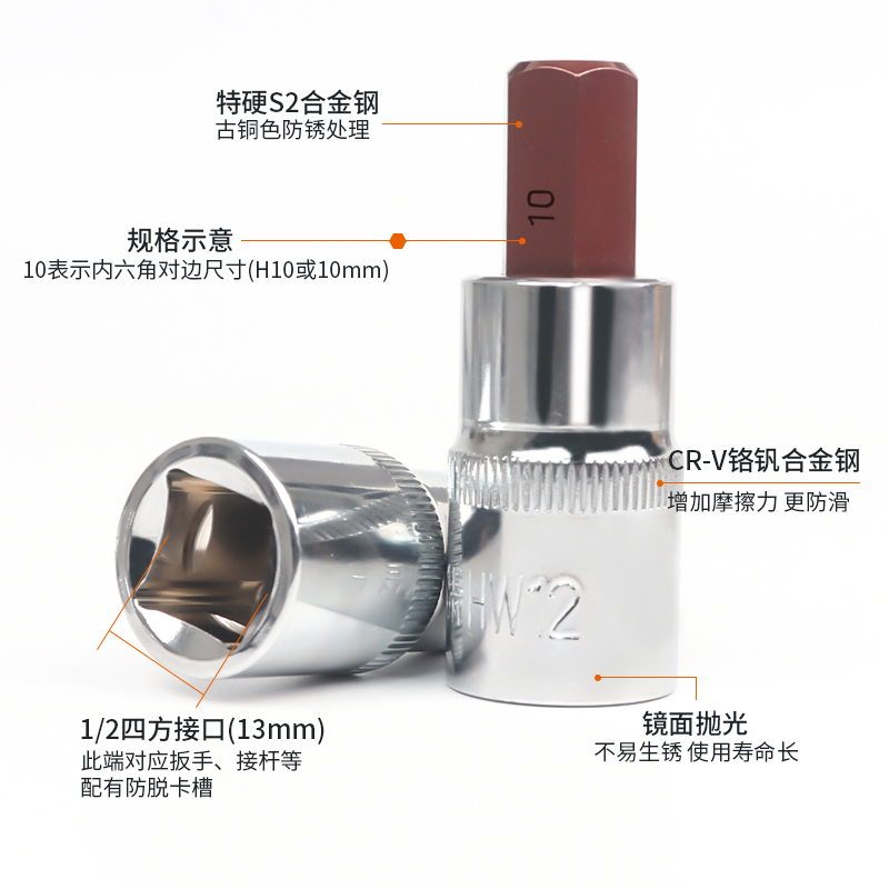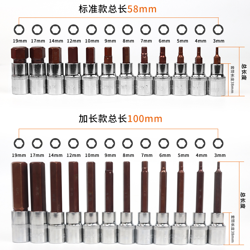 Inner Hexagon Sleeve Batch Head Lengthened Screwup Sleeve Head Suit Combination 1 2 Electric Screwdrivers Hexagon Pneumatic Wrench Batch Head