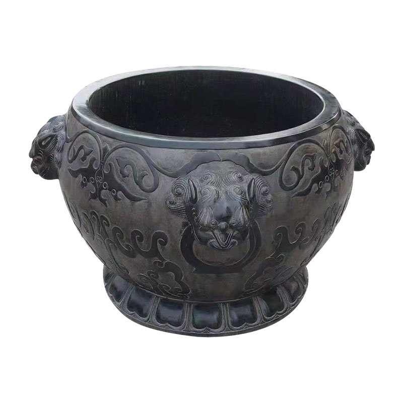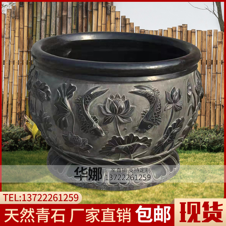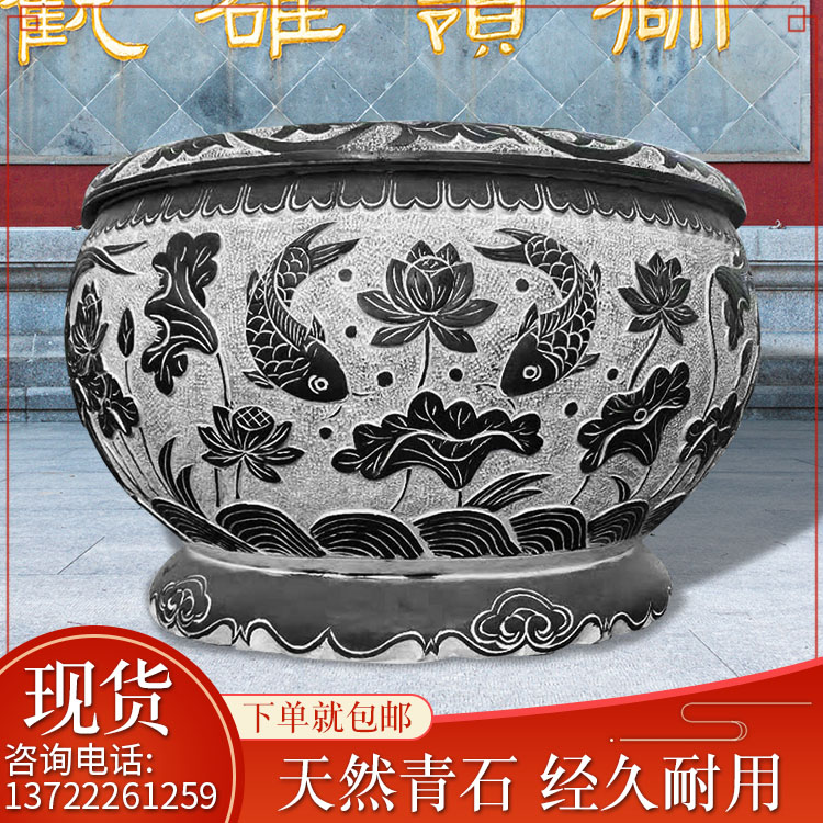 Natural stone carving fish tank turquostone imitation ancient stone cylinder outdoor patio flower pots stone trough raised fish pool lotus cylinders stone hem pieces