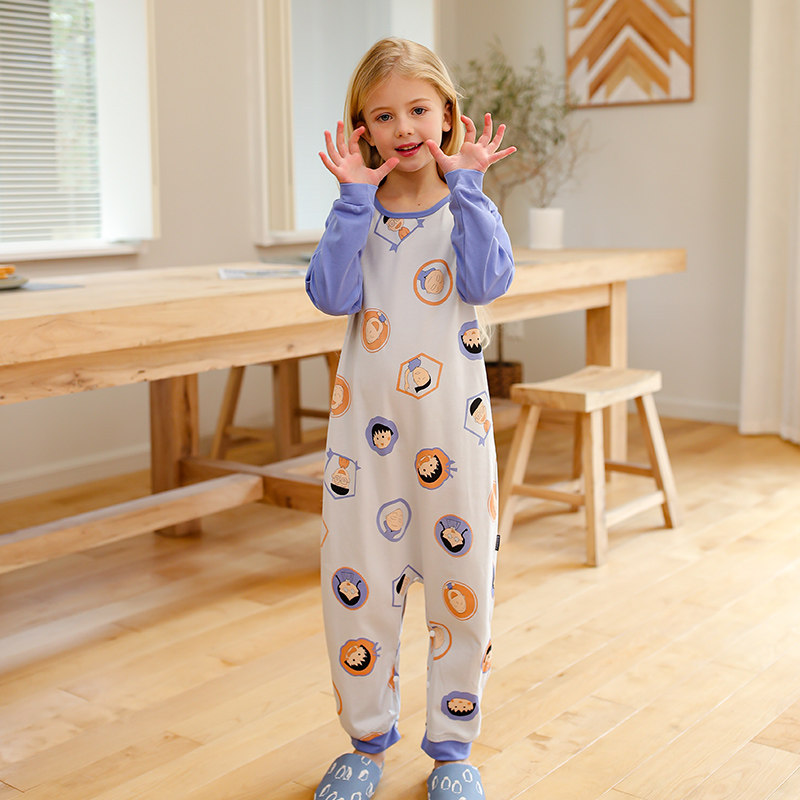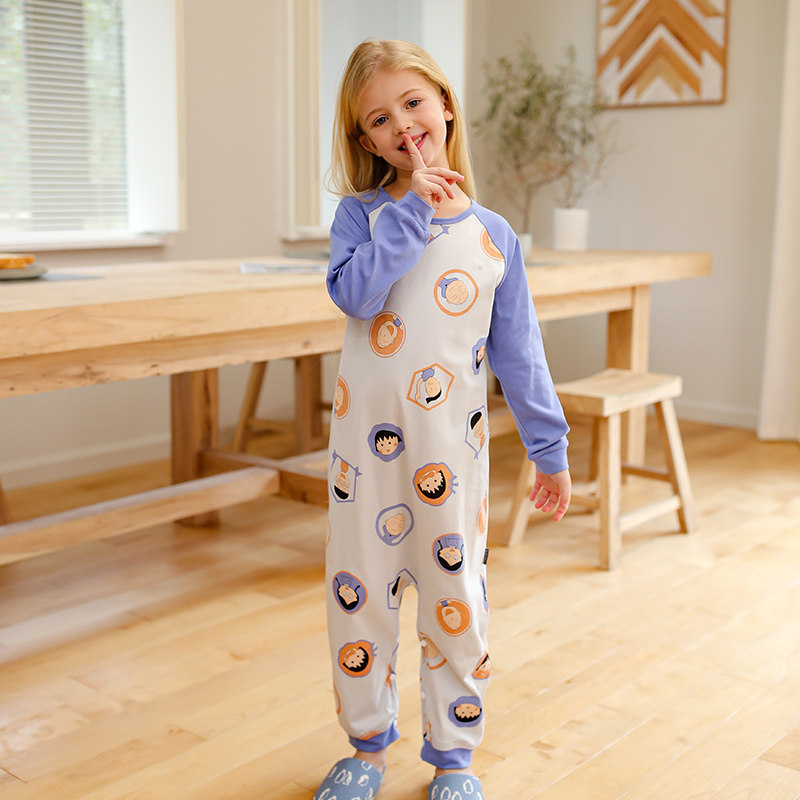 Children's one-piece pajamas spring and autumn pure cotton girls long-sleeved anti-kick one-piece little girl middle and large children's spring cartoon