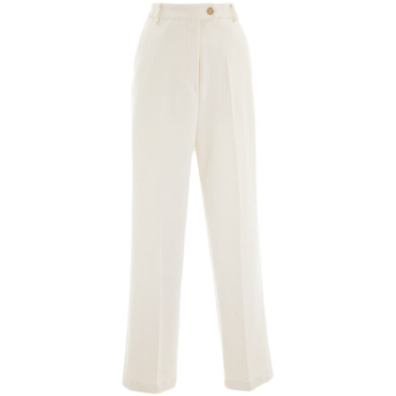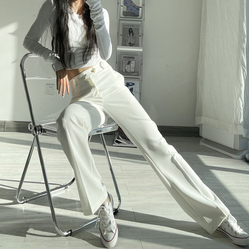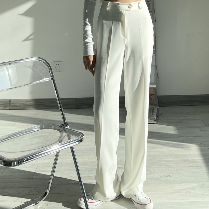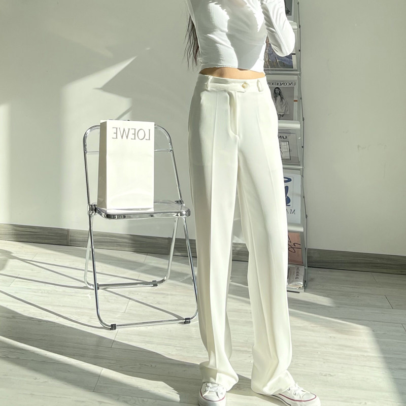 Spring autumn new high waist white commuter straight drum pants 100 hitch slim drag ground wide leg pants temperament casual student pants women