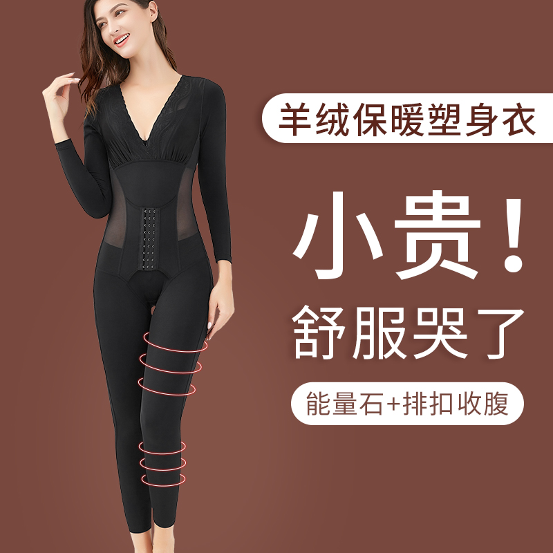 Autumn and winter warm body sculpting underwear women's one-piece abdomen corset postpartum body shaping thin body strong pressure without trace