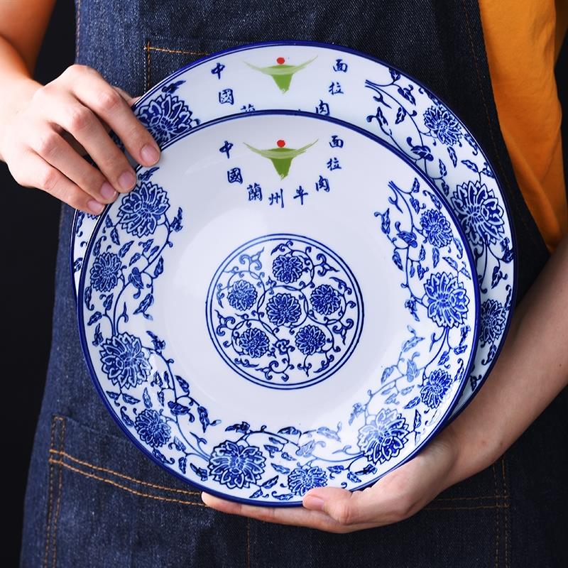 Green flower porcelain seawater bowl China Lanzhou beef noodles special bowl plate ceramic cutlery chili jar oil vinegar jar commercial