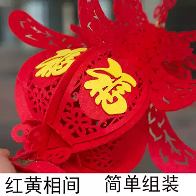 Chunfu lantern Chinese knot Lantern Dragon head long version six side New Year Gold Gold Crown blessing lace long version gold square double layer gold butterfly blessing Square New Year blessing gold six face-welcome New Year blessing